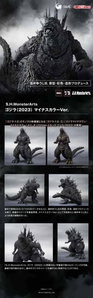 The S.H.MonsterArts Godzilla (2023) Minus Color Ver. Monochrome Figure is a limited-edition figure available exclusively in Japan. It represents the iconic Godzilla in a monochrome color scheme, inspired by the 2023 film "Godzilla Minus One." This collectible figure is part of the S.H.MonsterArts series, known for its highly detailed craftsmanship, with meticulously sculpted features and intricate articulation for dynamic poses. The Minus Color Ver. captures Godzilla in a dramatic, subdued, monochromatic style, emphasizing the dark, ominous nature of the character. Ideal for collectors, it is a must-have for fans of the Godzilla franchise. Shipping Instruction Airmail (No insurance & No tracking number, about 7-14 days to USA.) With tracking number + $ 4(insurance &tracking number 7-14 days to USA.) (our recommendation) EMS +$ 25(insurance &tracking number 3-7 days to USA.) **To International Buyers Please Note the following points** Import duties, taxes and charges are not included in the item price or shipping charges. These charges are the buyers responsibility. Please check with your country's customs office to determine what these additional costs will be prior to bidding/buying. These charges are normally collected by the delivering freight (shipping) company or when you pick up the item . Please do not confuse them for additional shipping charges. We do not declare merchandise under value nor as "gifts" US and International government regulations prohibit such behavior.