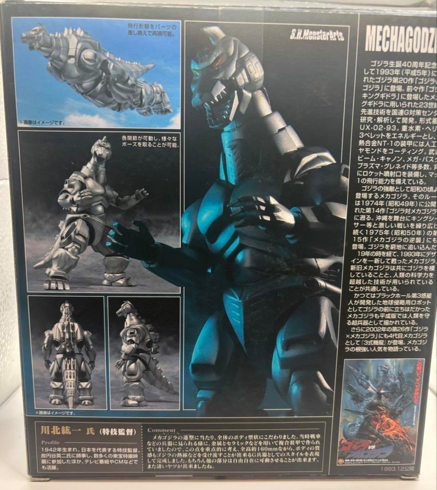 Description: S.H.MonsterArts Vol.2 Mechagodzilla UX-02-93 (from “Godzilla vs. Mechagodzilla” 1993) The second release in the S.H.MonsterArts series is the UX-02-93 Mechagodzilla, which appeared in the 1993 theatrical film "Godzilla vs. Mechagodzilla." Certain parts of the figure are made from die-cast metal, giving it not only articulation but also the heavy, mechanical feel characteristic of a mecha kaiju. With articulation that exceeds even the actual action suits used in the film, the figure boasts an impressive range of motion, allowing for dynamic action poses. Product Specifications: Height: Approx. 160mm Materials: Die-cast, ABS, PVC, POM Set Contents: Main body Interchangeable hands Interchangeable neck Interchangeable tail Interchangeable abdomen (Plasma Grenade cannon open mode) First Production Limited Bonus: Full set of Mega Buster effect parts We have many other items on sale, so please take a look. We will respond to your requests even if the item is not listed on our store, so please feel free to contact us. Authentic, shipped from Japan All items are shipped with a tracking number Return Policy: We accept returns within 30 days of the delivery date. Returns without our prior approval or requests made after 30 days from delivery will not be accepted. Please ensure that the delivery details of the order are correct. The item must be returned in its original condition. If applicable, the item should be returned in new condition. For any damage that occurred during shipping, please contact us immediately. Importer's Responsibility: Import duties, taxes, and fees are not included in the item price or shipping cost. These charges are the buyer's responsibility. Please check with your country's customs office to determine what these additional costs will be prior to bidding or buying. Thank you for your understanding.