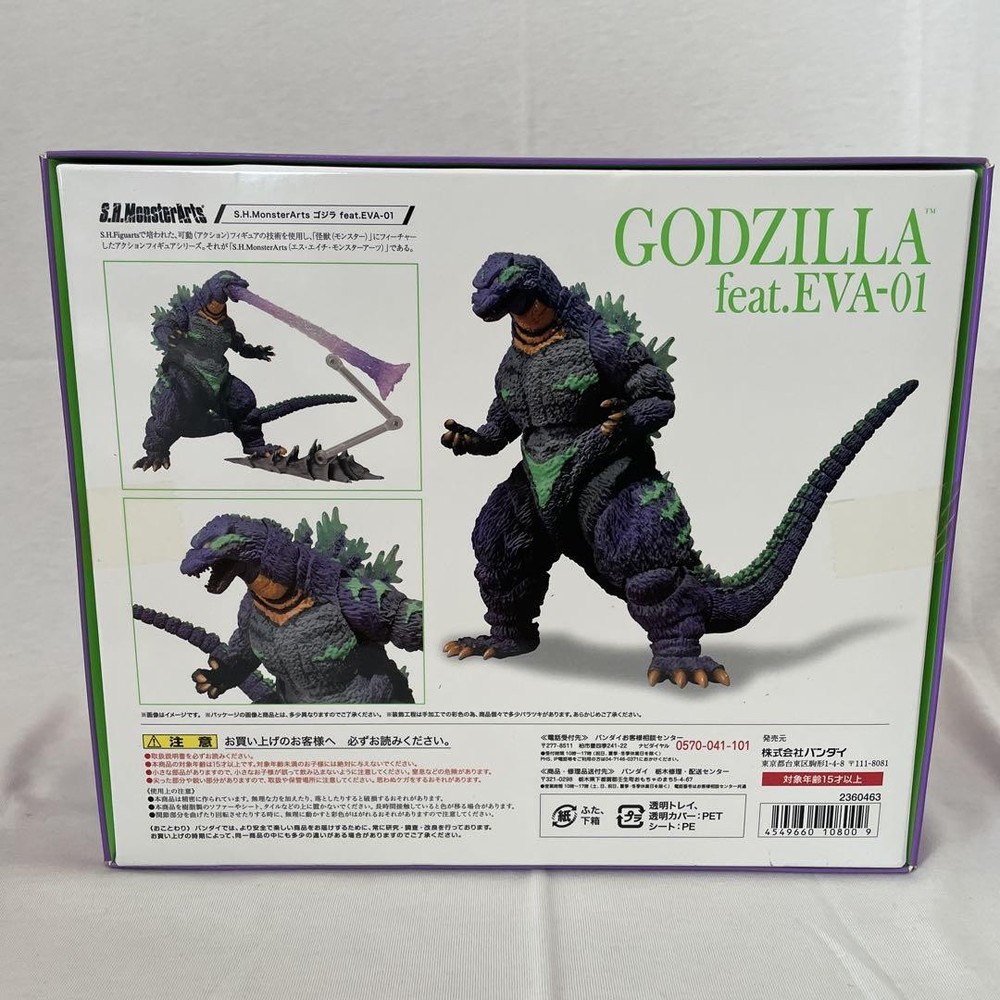 Item Title S.H.Monsterarts Godzilla Feat.Eva-01 Payment Supports managed payments Please pay within 5 days after auction is finished. About Us We are located in Japan. It's our pleasure to make you happy by proposing our recommend item. If you have any questions or request about items, please feel free to ask us. International Buyers - Please Note: -Import duties, taxes, and charges are not included in the item price or shipping charges. These charges are the buyer's responsibility. -Please check with your country's customs office to determine what these additional costs will be prior to bidding/buying. -These charges are normally collected by the delivering freight (shipping) company or when you pick the item up - do not confuse them for additional shipping charges. -We do not mark merchandise values below value or mark items as - gifts - The US and International government regulations prohibit such behavior. Thank you for your understanding.