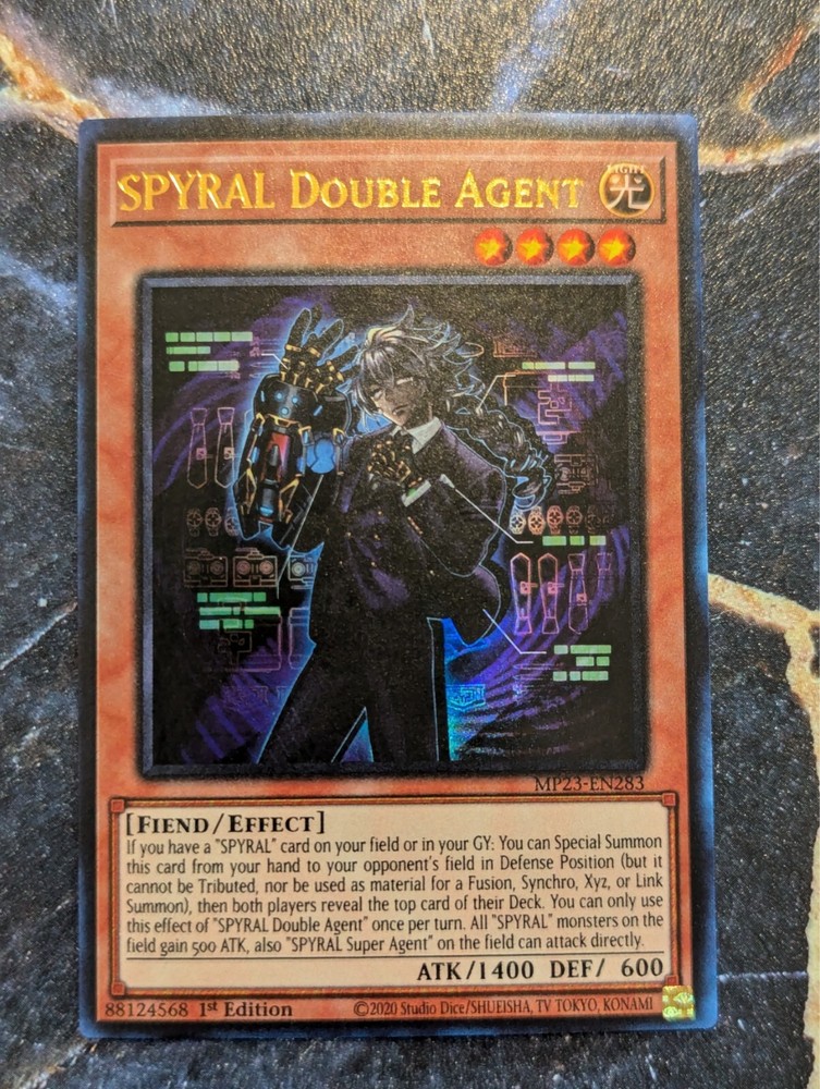 This SPYRAL Double Agent card is a must-have for any Yu-Gi-Oh! TCG collector. With an Attack/Power of 1400 and Defense/Toughness of 600, this Ultra Rare card is sure to be a valuable addition to your collection. The card is in English and is a 1st Edition effect type card from the 25th Anniversary Tin: Dueling Heroes Mega Pack set manufactured by Konami. The card features the Attribute/MTG:Color Light and belongs to the CCG Individual Cards and Collectible Card Games categories. The card number is MP23-EN283, and it is a perfect fit for anyone looking for a rare and powerful card. Get your hands on this card today and add it to your Yu-Gi-Oh! TCG collection.