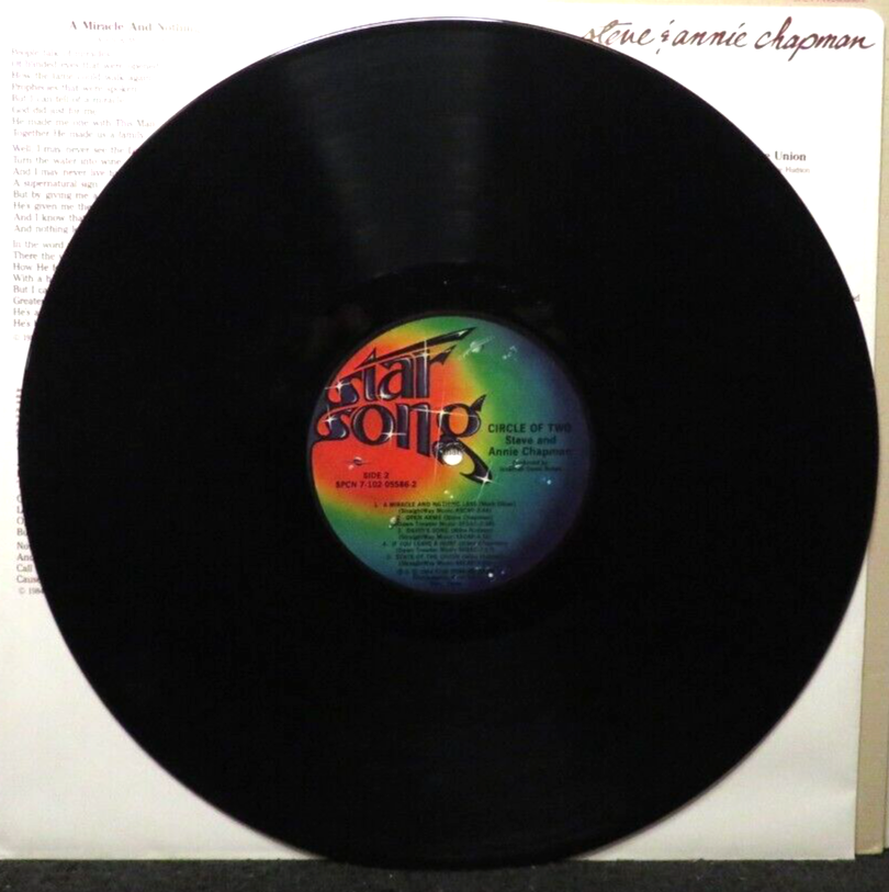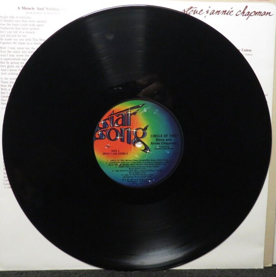YOU ARE BIDDING ON A STEVE & ANNIE CHAPMAN CIRCLE OF TWO (VG+) SPCN 7-102-05586-2 LP VINYL RECORD RECORDS ARE IN VERY GOOD USED CONDITION UNLESS NOTED COVERS USUALLY HAVE WEAR AND ARE NOT GRADED PLEASE VIEW ALL PHOTOS FOR THE BEST DESCRIPTION I WILL COMBINE SHIPPING ON RECORDS BOUGHT IN THE SAME 5 DAY PERIOD EACH ADDITIONAL RECORD IS 50 CENTS MORE PLEASE REQUEST TOTAL BEFORE PAYING TO GET DISCOUNT I USE RECORD MAILERS WITH CARDBOARD BACKERS HERE IS THE GRADING THAT I USE FOR REFERENCE TO MY VISUAL INSPECTION IF THERE IS A PROBLEM PLEASE LET ME KNOW I STRIVE FOR 5 STAR FEEDBACK Near Mint (NM or M-) A nearly perfect record. Many dealers won't give a grade higher than this implying (perhaps correctly)that no record is ever truly perfect. The record should show no obvious signs of wear. A 45 RPM or EP sleeve should have no more than the most minor defects, such as almost invisible ring wear or other signs of slight handling. Basically, an LP in near mint condition looks as if you just got it home from a new record store and removed the shrink wrap. Near Mint is the highest price listed in all Goldmine price guides. Anything that exceeds this grade, in the opinion of both buyer and seller, is worth significantly more than the highest Goldmine book value. Very Good Plus (VG+) A Very Good Plus record will show some signs that it was played and otherwise handled by a previous owner who took good care of it. Record surfaces may show some signs of wear and may have slight scuffs or very light scratches that don't affect one's listening experiences. Slight warps that do not affect the sound are "OK". The label may have some ring wear or discoloration, but it should be barely noticeable. The center hole will not have been misshapen by repeated play. In general, if not for a couple things wrong with it, this would be Near Mint. All but the most mint-crazy collectors will find a Very Good Plus record highly acceptable. Very Good (VG) Many of the defects found in a VG+ record will be more pronounced in a VG disc. Surface noise will be evident upon playing, especially in soft passages and during a song's intro and fade, but will not overpower the music otherwise. Groove wear will start to be noticeable, as with light scratches (deep enough to feel with a fingernail) that will affect the sound. Labels may be marred by writing, or have tape or stickers (or their residue) attached. Good (G), Good Plus (G+) Good does not mean Bad! A record in Good or Good Plus condition can be put onto a turntable and will play through without skipping. But it will have significant surface noise and scratches and visible groove wear (on a styrene record, the groove will be starting to turn white).