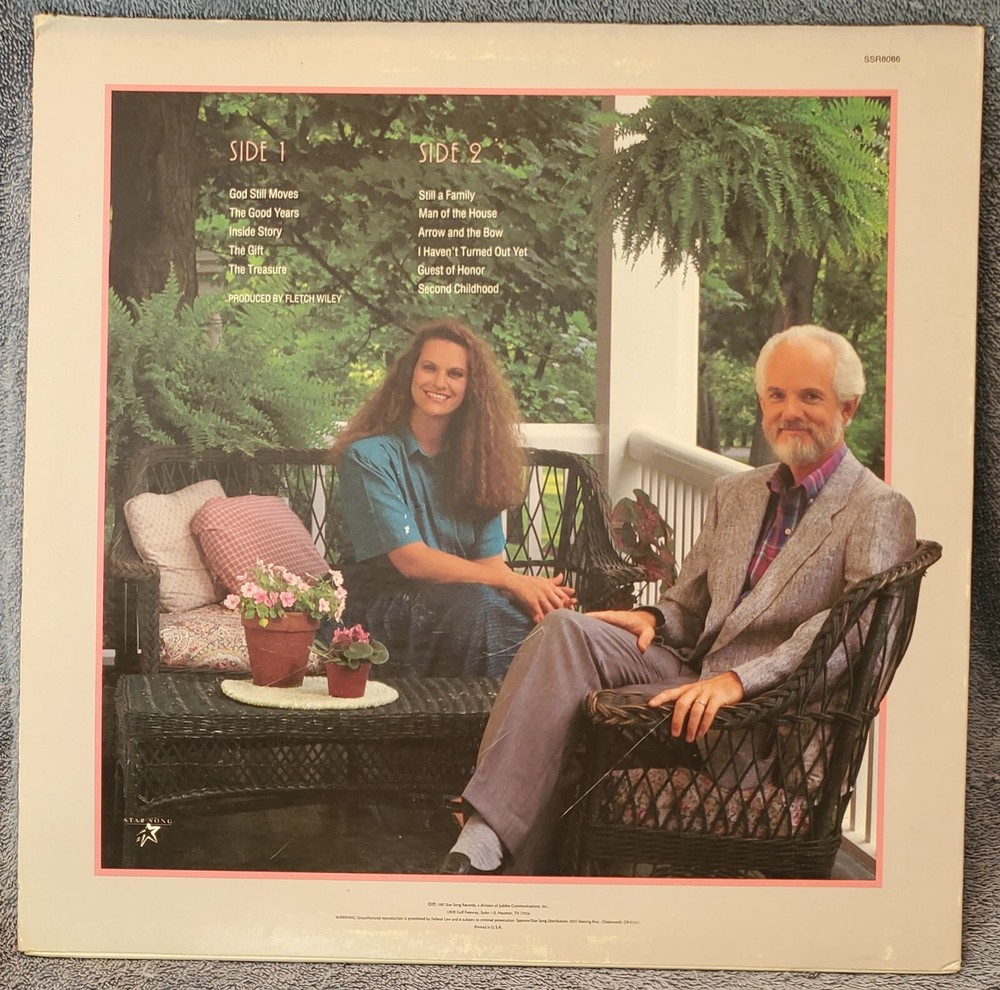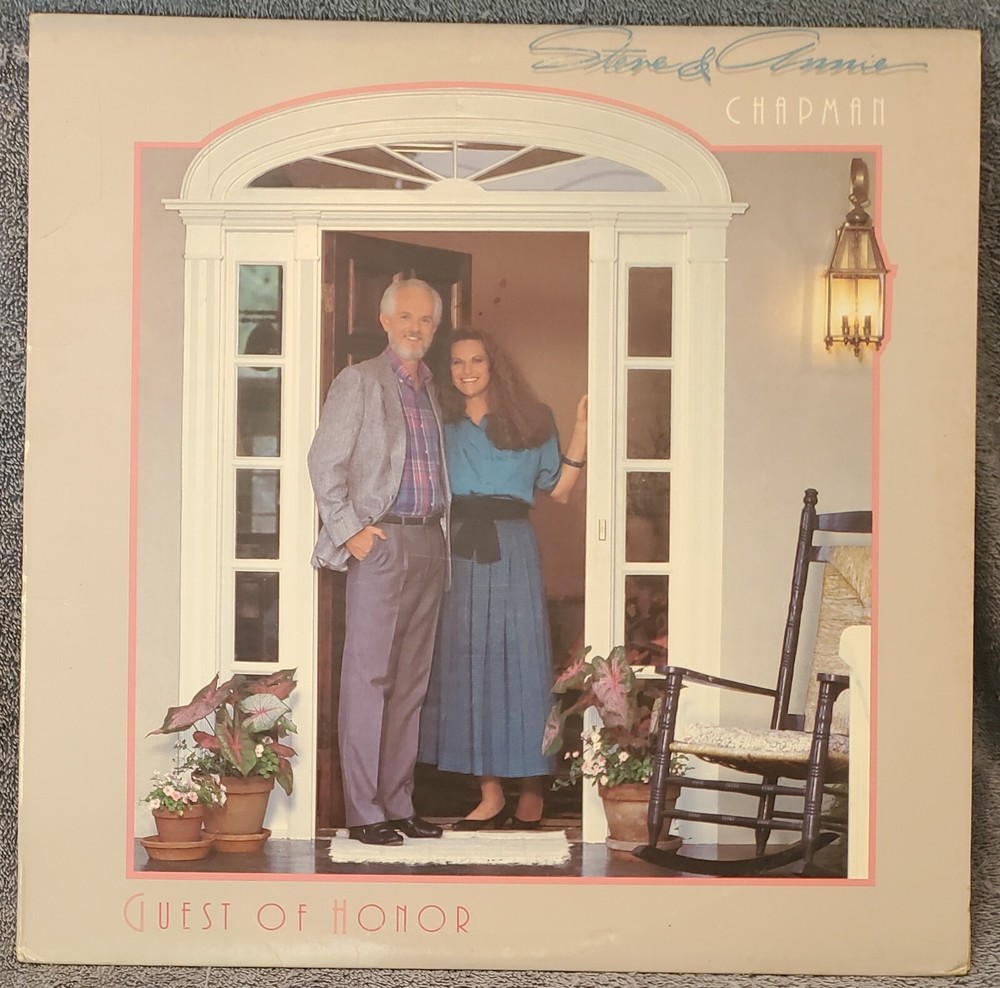 In addition to what you see here, we've got much more so if you're looking for something in particular, use the search tab located underneath our user ID at the top of our listings. You can also contact us to see if we can find anything you've been trying to find. New items are added regularly so check back often to see what we've unearthed on recent music shopping trips. You can also take advantage of our "BUY 2, GET 1 FREE" (lowest priced item applies) offer and stock up on music for your collection! We love offering titles that are a little off the beaten path so if you've been looking for that obscure jewel, we just might have what you've been trying to find! For sale is the 1987 LP "Guest Of Honor" by Steve & Annie Chapman on Star Song Records, catalog #SSR8086. Please see rear cover photo for complete listing of songs. LP in excellent- condition with very clean playing surface, sounds great with minimal background noise. Cover in very good condition with light edge/corner wear. All of our LP's are used unless noted as still sealed (SS) and have been played to insure quality. International buyers welcome, please see shipping information. Please take a look at our other store items/auctions for more great Christian music spanning the entire spectrum of musical styles! Thanks for looking!