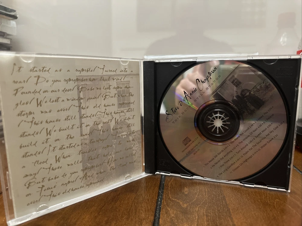 Experience the soul-stirring melodies of Steve & Annie Chapman with this audio CD, titled "This House Still Stands". Immerse yourself in their signature tunes that transcend genres, with this mint disc that promises an unforgettable listening experience. Indulge in the music that has something for everyone, be it the upbeat rhythms or the heartwarming lyrics. This CD is a must-have for any music enthusiast, with its soulful tracks that resonate with the soul. Get ready to be transported to a world of beautiful music, with "This House Still Stands" by Steve & Annie Chapman.
