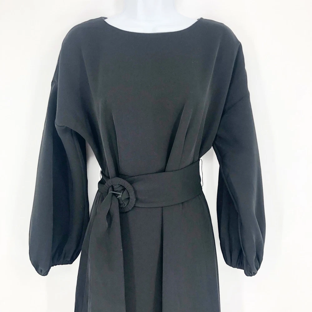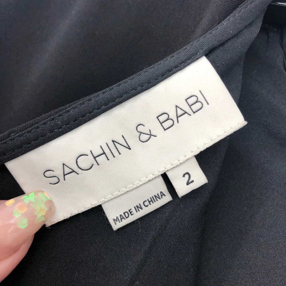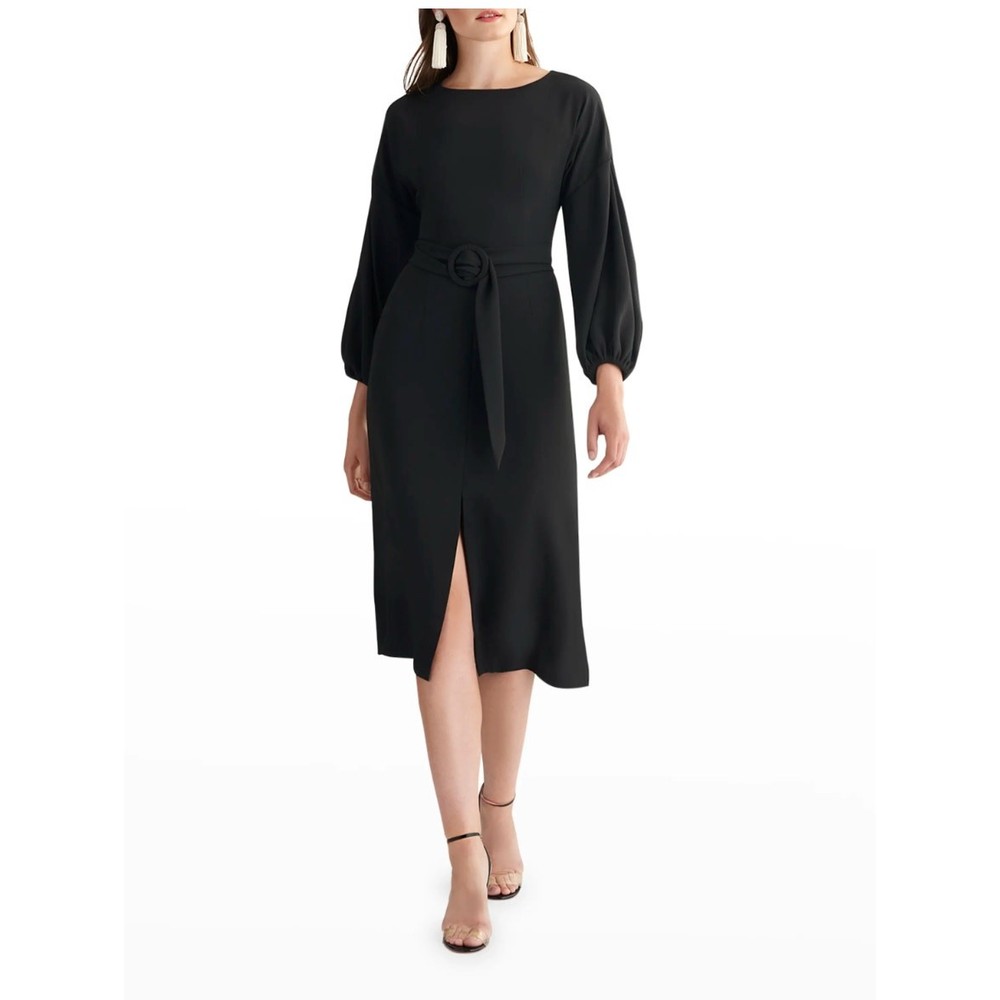 <![CDATA[<div>Sachin & Babi Women Puff Sleeve Midi Dress 2 Black Belted Long Sleeve Cocktail gently used condition - small pilling on front of dress Sachin & Babi "Annie" chic, lightweight crepe dress punctuated by a center-front split Round neckline Puffed bracelet sleeves; ruched cuffs Dropped shoulders Self-tie belt Hem falls below the knee Sheath silhouette Concealed back zipper Polyester Dry clean Size: 2- pit to pit 185.5", sleeve length 16.5", length 41", waist 14" Color: Black N8989