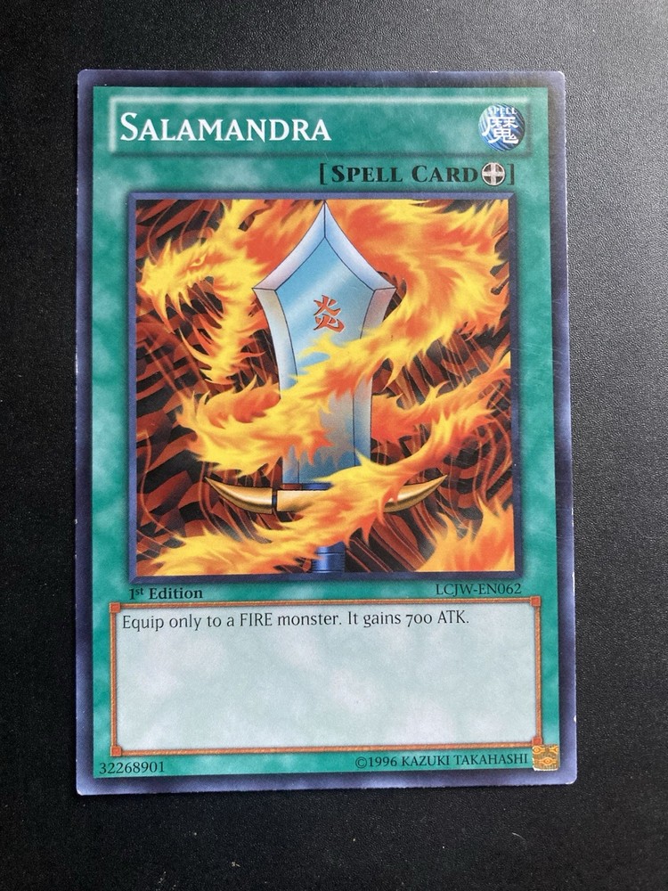 Level up your Yu-Gi-Oh! TCG collection with the Salamandra LCJW-EN062 card from the Legendary Collection 4: Joey's World-1st Edition. As a common/short print card, it's a subtle addition that can make a big impact in your duels. The card allows for Spell-Normal summoning, offering strategic depth to your gameplay. Salamandra is a must-have for any serious Yu-Gi-Oh! player, featuring the quality and detail Konami is known for. It comes in the standard English language card size with a regular finish, suitable for players aged 6 and above. Enhance your deck with this 1st Edition spell card and bring a touch of the legendary to your next battle.