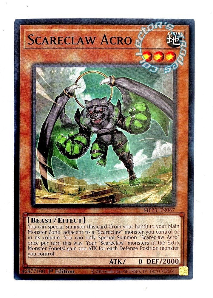 "Scareclaw Acro" MP23-EN067 Common Yu-Gi-Oh! 25th Anniversary Tin: Dueling Heroes Mega Pack Near Mint - Level 3 - - Earth Monster - - " Scareclaw Acro " - - No.067 - - Common - - 2023 Yu-Gi-Oh! - 25th Anniversary Tin: Dueling Heroes Mega Pack - - 1st Edition – - Beast/Effect - - ATK/0|DEF/2000 - - 100% Authentic Yu-Gi-Oh! - - Near Mint - - Disclaimer- No replacements can or will be shipped in case of missing/broken package. If you have any questions, comments, or concerns, please feel free to contact me. Thank you for your interest in our listings and store and please come again!