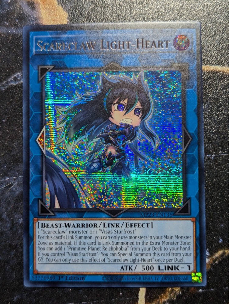 This Scareclaw Light-Heart card is a must-have for any Yu-Gi-Oh! TCG collector. With a Dark attribute and Beast-Warrior creature/monster type, this Prismatic Secret Rare card is an Effect, Link type that boasts an Attack/Power of 500. The card comes from the 25th Anniversary Tin: Dueling Heroes Mega Pack and is manufactured by Konami. It is an English language card and has the card number MP23-EN136. The Scareclaw Light-Heart card is a 1st Edition and is perfect for any fan of the game. It is an Individual Card from the CCG and belongs to the Collectible Card Games category. This card is a great addition to any collection and is sure to impress.