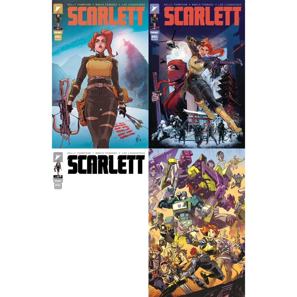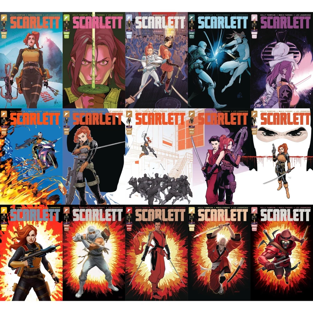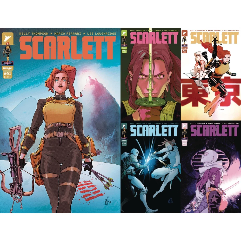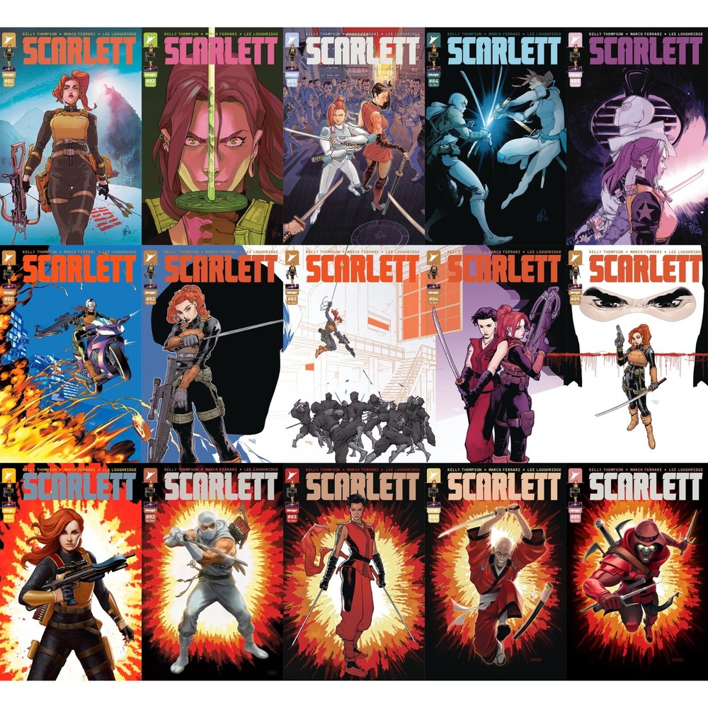 The individual books are: FULL RUN (5 BOOKS) [SCARLETT #1 (OF 5) CVR A MARCO FERRARI, SCARLETT #2 (OF 5) CVR A MARCO FERRARI, SCARLETT #3 (OF 5) CVR A FERRARI & LOUGHRIDGE, SCARLETT #4 (OF 5) CVR A FERRARI, SCARLETT #5 (OF 5) CVR A FERRARI & LOUGHRIDGE] FULL RUN [#3 B VARIANT] (5 BOOKS) [SCARLETT #1 (OF 5) CVR A MARCO FERRARI, SCARLETT #2 (OF 5) CVR A MARCO FERRARI, SCARLETT #3 (OF 5) CVR B TAKARA, SCARLETT #4 (OF 5) CVR A FERRARI, SCARLETT #5 (OF 5) CVR A FERRARI & LOUGHRIDGE] SCARLETT TP VOL 01 CVR A BOOK MARKET ED [collects SCARLETT #1-5] SCARLETT TP VOL 01 CVR B DIRECT MARKET EDITION [collects SCARLETT #1-5] SCARLETT #1 VARIANT SET (4 BOOKS) [ SCARLETT #1 (OF 5) CVR A MARCO FERRARI, SCARLETT #1 (OF 5) CVR B JOËLLE JONES VAR, SCARLETT #1 (OF 5) CVR H BLANK SKETCH VAR, SCARLETT #1 (OF 5) CVR I JASON HOWARD CONNECTING EU ANNIVERSARY VAR] SCARLETT #1 (OF 5) CVR A MARCO FERRARI SCARLETT #1 (OF 5) CVR B JOËLLE JONES VAR SCARLETT #1 (OF 5) CVR C INC 1:10 GLEB MELNIKOV CONNECTING VAR SCARLETT #1 (OF 5) CVR D INC 1:25 STEVE EPTING VAR SCARLETT #1 (OF 5) CVR E INC 1:50 LEONARDO ROMERO VAR SCARLETT #1 (OF 5) CVR F INC 1:100 JONBOY MEYERS FOIL VAR SCARLETT #1 (OF 5) CVR G INC 1:250 DAVID MACK VAR SCARLETT #1 (OF 5) CVR H BLANK SKETCH VAR SCARLETT #1 (OF 5) CVR I JASON HOWARD CONNECTING EU ANNIVERSARY VAR SCARLETT #1 (OF 5) CVR J B&W JASON HOWARD CONNECTING EU ANNIVERSARY VAR SCARLETT #2 (OF 5) CVR A MARCO FERRARI SCARLETT #2 (OF 5) CVR B KARL KERSCHL VAR SCARLETT #2 (OF 5) CVR C INC 1:10 GLEB MELNIKOV CONNECTING VAR SCARLETT #2 (OF 5) CVR D INC 1:25 PAOLO RIVERA VAR SCARLETT #2 (OF 5) CVR E INC 1:50 ANNIE WU VAR SCARLETT #4 (OF 5) CVR A FERRARI SCARLETT #4 (OF 5) CVR B PUTRI SCARLETT #4 (OF 5) CVR C 10 COPY INCV MELNIKOV SCARLETT #4 (OF 5) CVR D 25 COPY INCV GEORGIEV SCARLETT #4 (OF 5) CVR E 50 COPY INCV HILL SCARLETT #5 (OF 5) CVR A FERRARI & LOUGHRIDGE SCARLETT #5 (OF 5) CVR B OUM SCARLETT #5 (OF 5) CVR C 10 COPY INCV MELNIKOV SCARLETT #5 (OF 5) CVR D 25 COPY INCV GEORGIEV SCARLETT #5 (OF 5) CVR E 50 COPY INCV CLARKE PREMADE BAGS & BOARDS (SET OF 5) **5 BCW resealable modern bags and boards - our sets of books come packed in silver age bags with modern boards in sets up to 5 books in order to keep books safe and secure in both storage and shipping. You can include additional bags and boards with your order by adding this option to your cart. 1 set is 5 premade bags and boards.** "The next chapter of Codename: G.I. Joe begins here! Shana "Scarlett" O'Hara is about to take on the most dangerous black ops mission of her career: infiltrating the mysterious rising power in Japan known as Clan Arashikage. Her one lead is her former partner-Jinx-turned Arashikage enforcer. Now, Scarlett must use her very particular set of skills to survive undercover... and discover a shocking weapon that could change the balance of power on Earth. Red-hot writer Kelly Thompson and artist Marco Ferrari introduce some of the most anticipated characters to the Energon Universe in ways you'll never expect!" Please read the entire listing and our store terms for details on shipping, bagging, and grading before purchasing. If you have any questions, please reach out to us, we are happy to assist you. Also check out the other books and collectables in our store and follow us to keep up on our latest offerings!