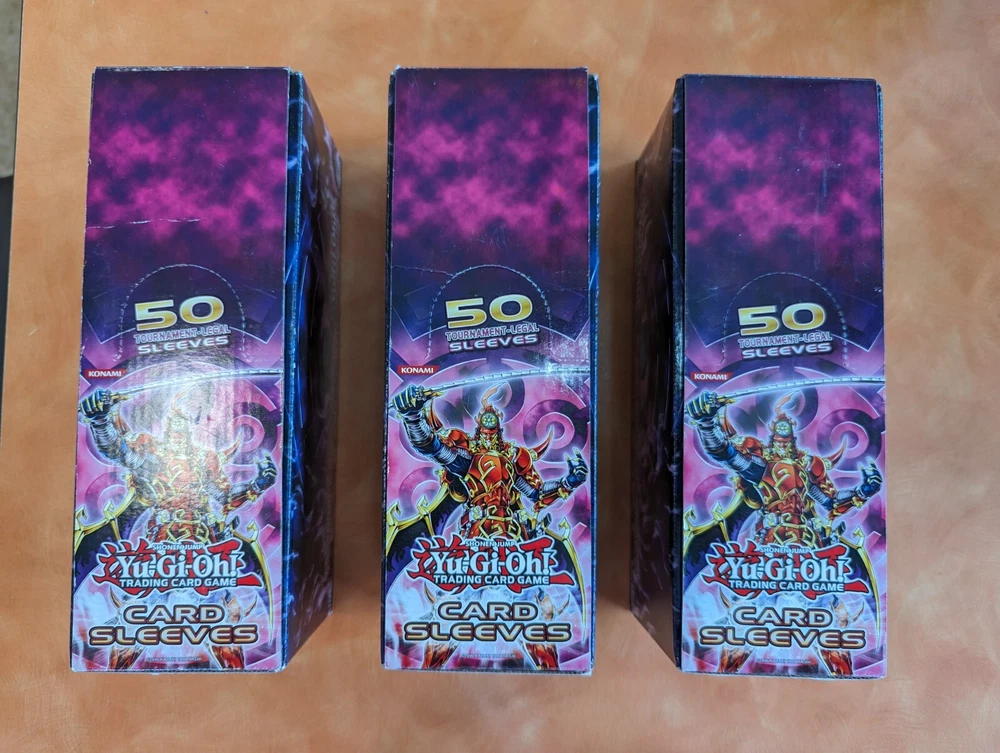 ( ITEM LOCATION CORRECTED: Item Ships from Miami, FL ) One (1) Display Box of Brand New, Sealed- Yu-Gi-Oh Konami Legendary Six Samurai Card Sleeves containing fifteen (15) packs of card sleeves: Fifty (50) sleeves per pack per display box. Ships from Miami, FL.