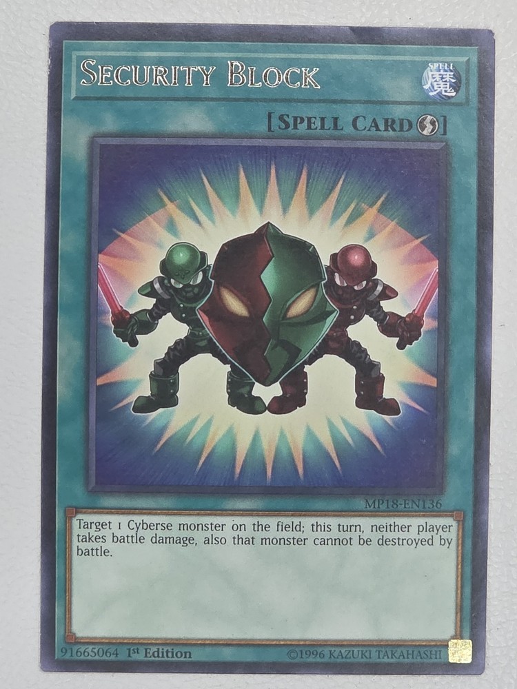 This is a nice example of a 2018 Mega-Tins Mega Pack #MP18-EN136 Security Block Other important information about this card: Rare In 2018 Security Block played for the . Please check out our other lis...