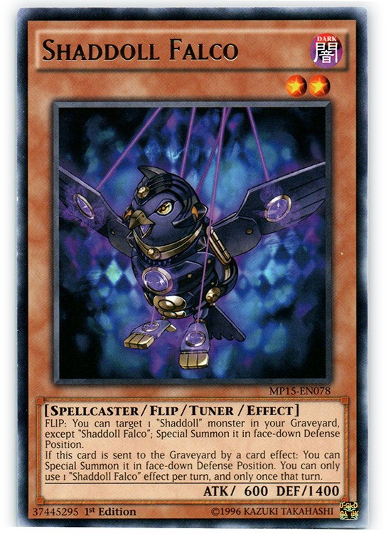 Shaddoll Falco - MP15-EN078 - Rare - 1st Edition Image is a stock photo of the card. You will receive the card in Heavily Played condition Condition: Heavily Played ATK/DEF : 600/1400 Ability : Attack #1 : Attack #2 : Attack #3 : Attribute : Dark Card Number : MP15-EN078 Card Rules : Card Text : FLIP: You can target 1 "Shaddoll" monster in your Graveyard, except "Shaddoll Falco"; Special Summon it in face-down Defense Position. If this card is sent to the Graveyard by a card effect: You can Special Summon it in face-down Defense Position. You can only use 1 "Shaddoll Falco" effect per turn, and only once that turn. Card Type : Flip monster Edition : 1st Finish : HP : Illustrator : Level : 2 Manufacturer : Monster Type : Spellcaster Name : Shaddoll Falco Passcode : 37445295 Pendulum Scale : Rarity : Rare Resistance : Retreat Cost : Set : 2018 Mega Tin Pack Stage : Weakness : Be sure to visit our store for a wide selection of your favorite cards! We are running specials RIGHT NOW!! Shipping Options: ~Ships in a regular white envelope with a stamp for FREE! (THERE IS NO TRACKING INFORMATION AVAILABLE FOR THE ABOVE METHOD. SHIPPING TIME IS 4-10 BUSINESS DAYS) ~Ships in a TRACKEDbubble mailer for $5.99! ~Shipments are handled same or next business day. ~FREE SHIPPING for each additional card, so shop around our store!