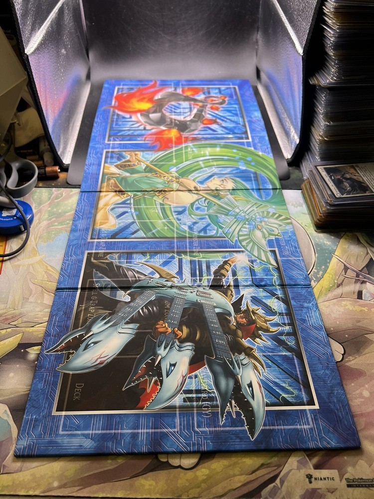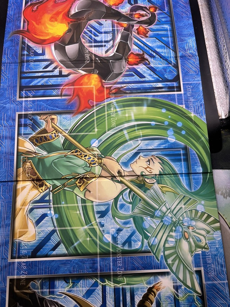 This Shonen Jump Yu-gi-oh! Yugioh Trading Card Game Mat/ Board features various characters in a Legendary Collection set. The multicolor playmat is made of cardboard material and is suitable for players aged 6+. It was manufactured by Konami in Japan in 2014 and has English language support. The mat is foldable and comes with limited features, making it a perfect addition to any collector's item.