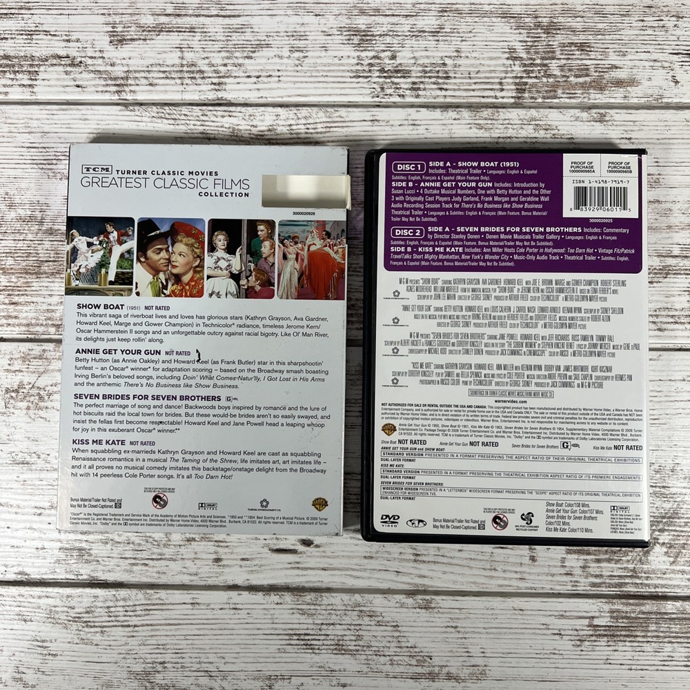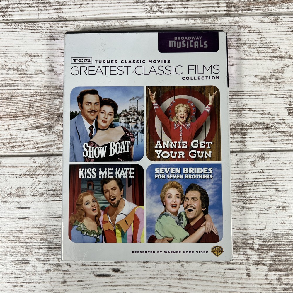 Description: This is a DVD of Turner Classic Movies: Greatest Classic Films Collection featuring 4 Broadway musicals. Films included are Show Boat, Annie Get Your Gun, Kiss Me Kate & Seven Brides for Seven Brothers. Condition: This is preowned, in good condition. Please look at pics to see condition. Shipping/Handling: Will ship within 1-2 days Will combine shipping, if applicable Shipping within the USA through USPS Shipping outside the USA through eBay International Shipping Program Returns: If returning, all items must be returned in the same condition as it was received. If it was sealed or with tags, it should be returned as such. Additional Notes: If you would like additional photos or have a question, just ask. We are happy to assist in any way possible. Most messages are returned within one business day. Please leave positive feedback if you enjoy your purchase! If for any reason there are issues, please contact us directly before leaving feedback so we can help to resolve. We give positive feedback to everyone that takes the time to do the same for us. THANK YOU FOR YOUR BUSINESS!