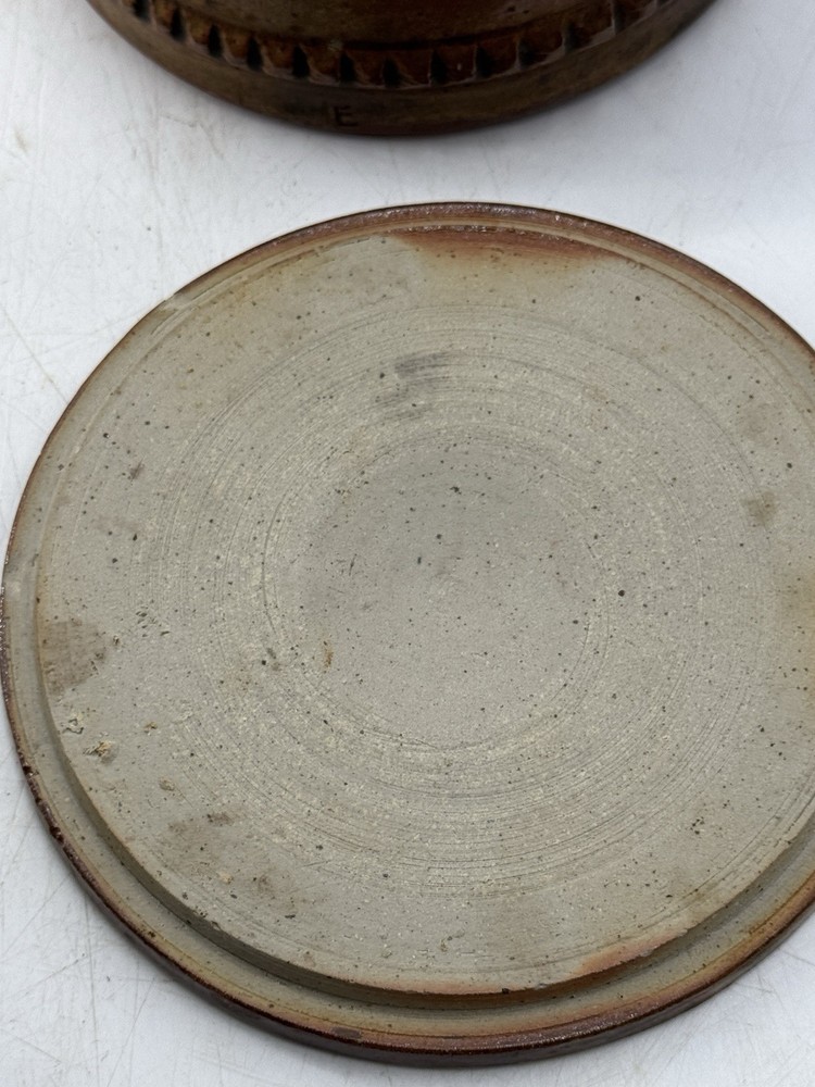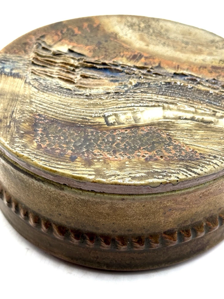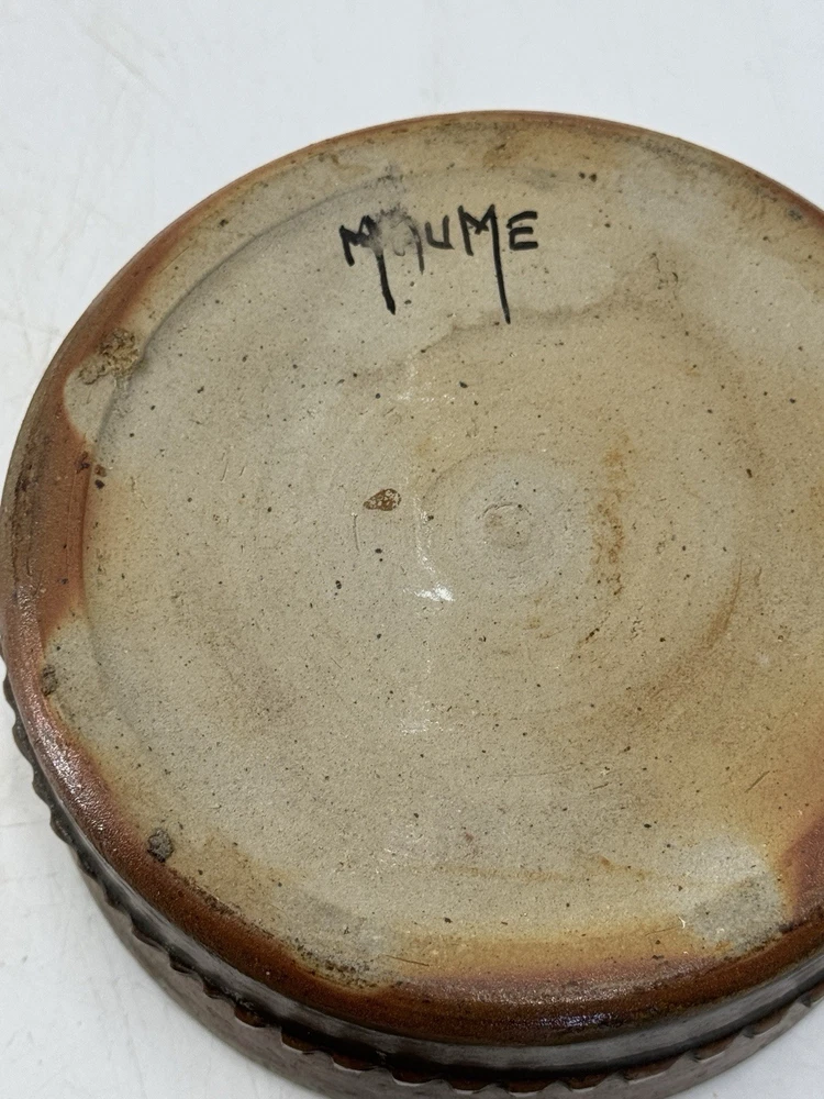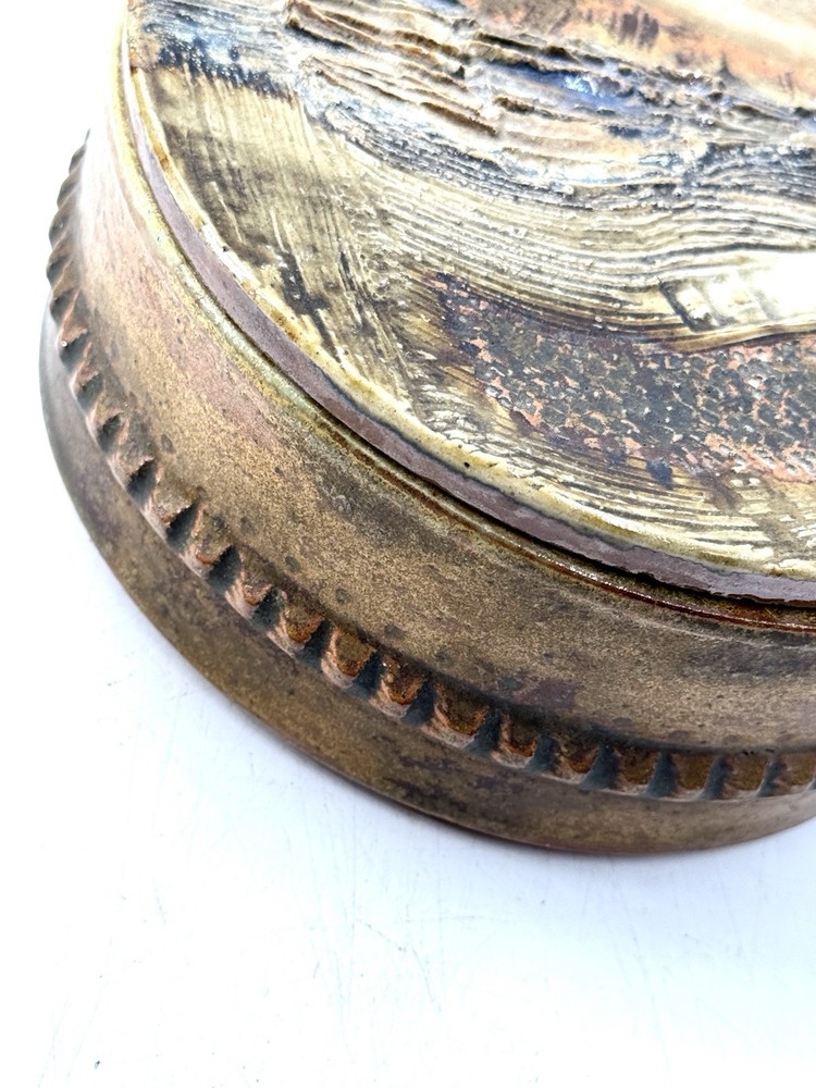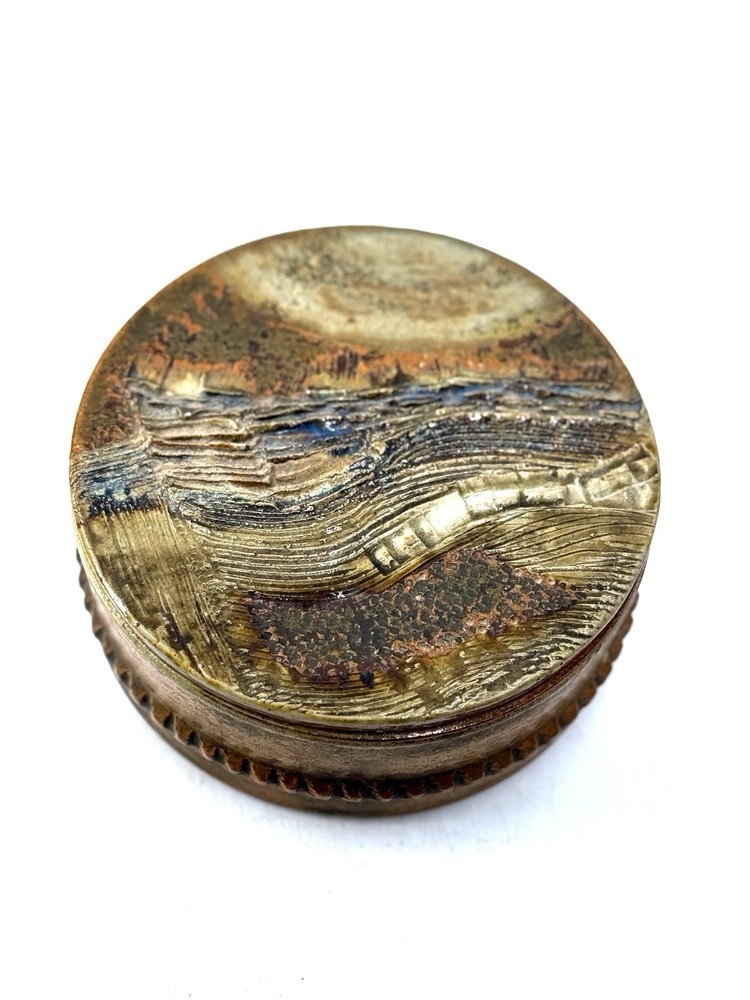 Annie Maume boite à bijoux en gres, cuisson bois en parfait état signée sous la base et trace de signature sur la ceinture diametre 15 cm ht 6 cm...