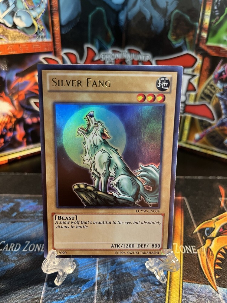 The "Silver Fang" card is from the Legendary Collection set of the Yu-Gi-Oh! TCG. It features the Earth attribute and is a Beast-type creature card named "Fang." This Ultra Rare card has a holo finish and is part of the Unlimited edition. Manufactured by Konami, this card is a part of the collection from Legendary Collection 3 Yugi's World. Suitable for players aged 6 and above, this card does not have an autograph and is highly sought after by collectors and players alike.