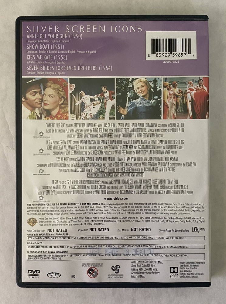 Silver Screen Icons: Broadway Musicals / Annie Get Your Gun / Show Boat / DVD. (2017, DVD). The DVD case is in very good to excellent condition with light shelf wear. The actual DVD discs are in like new condition and play perfectly! Shipped with USPS Mail and packaged carefully and securely (custom boxed) for safe delivery!