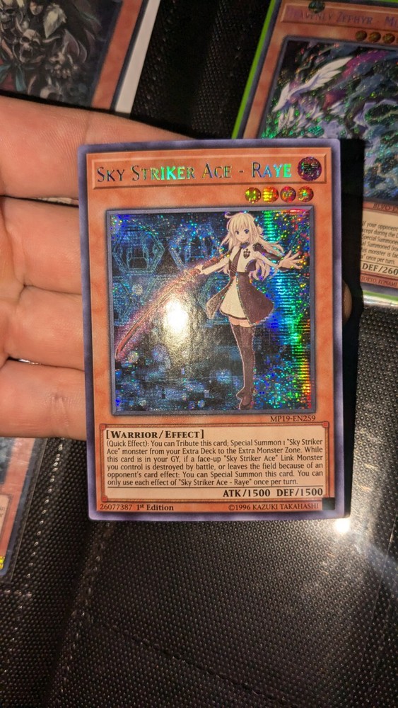 Elevate your Yu-Gi-Oh! TCG collection with the formidable Sky Striker Ace - Raye card, an Effect-type monster that packs a punch with its 1500 attack and defense. From the 2019 Gold Sarcophagus Tin Mega Pack, this card is a must-have for players and collectors alike, featuring the sought-after Prismatic Secret Rare rarity and the distinct MP19-EN259 card number. Crafted by Konami and presented in English, this Warrior-type creature adds depth to any deck with its unique abilities and strategic gameplay elements. As a 1st Edition release, it also holds a special place for those who value the history and evolution of the Yu-Gi-Oh! card series. Add Sky Striker Ace - Raye to your arsenal and claim victory in your next duel.