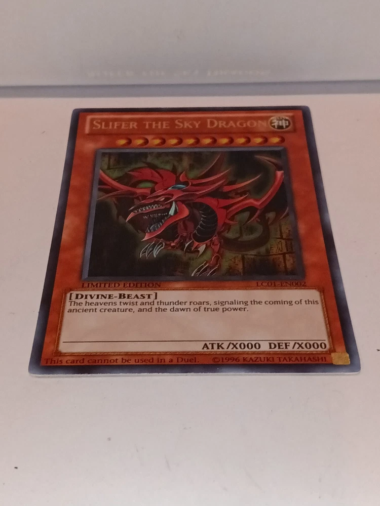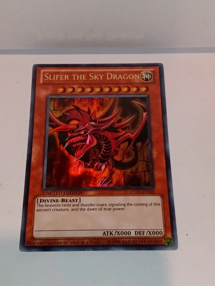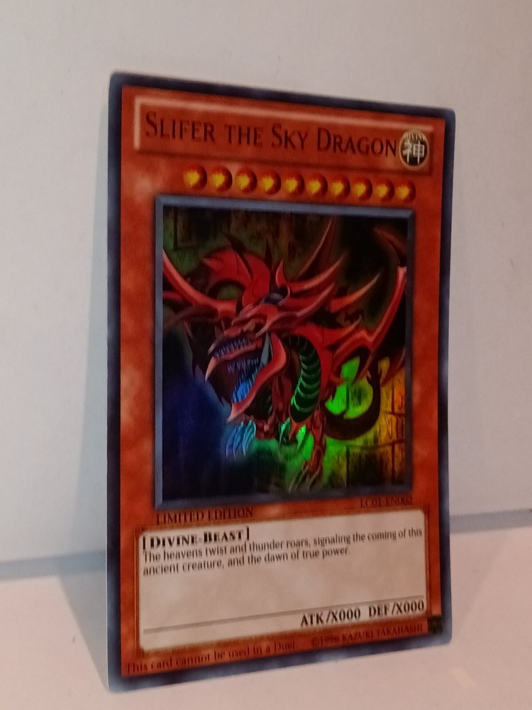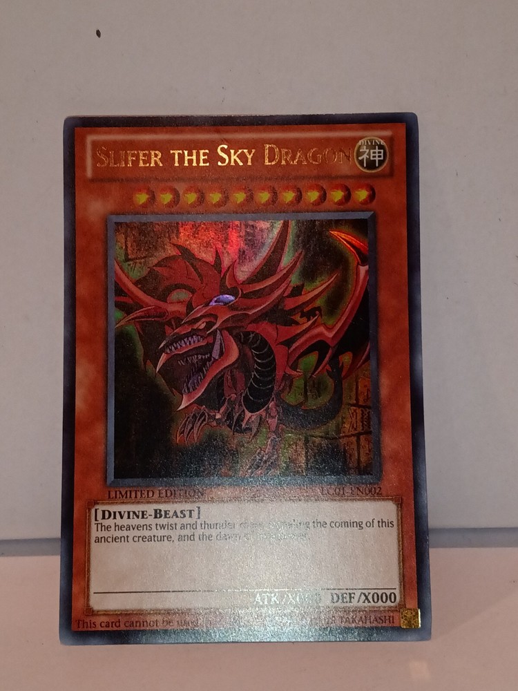 Slifer the Sky Dragon - LC01-EN002 - Ultra Rare Legendary Collection 1 Promo. Rarity Ultra Rare Description Slifer the Sky Dragon - LC01-EN002 - Ultra Rare is a Yugioh Promo Card (no edition) card from the Legendary Collection 1 [LC01] Yugioh set. This is an Ultra Rare. Yugioh began back in the mid 90's as a weekly short in Shonen Jump by 1999 the TCG game had launched in Japan. Yugioh has gone on to become one of the top card games in the world and has now surpassed 20 years of competitive play worldwide I have tons of cards for sale - View my Inventory-Great pricing if you buy in bulk