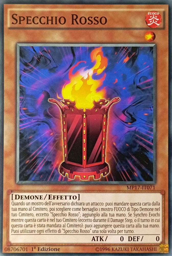 Specchio Rosso - Comune - 2017 Mega-Tin Mega Pack - MP17-IT071 - Italiano Nuovo Specchio Rosso - Comune - 2017 Mega-Tin Mega Pack - MP17-IT071 - Italiano Nuovo Quando un mostro dell’avversario dichiara un attacco: puoi mandare questa carta dalla tua mano al Cimitero, poi scegliere come bersaglio 1 mostro FUOCO di Tipo Demone nel tuo Cimitero, eccetto “Specchio Rosso”; aggiungilo alla tua mano. Se Synchro Evochi mentre questa carta è nel tuo Cimitero (eccetto durante il Damage Step, o il turno in cui questa carta è stata mandata al Cimitero): puoi aggiungere questa carta alla tua mano. Puoi utilizzare ogni effetto di “Specchio Rosso” una sola volta per turno. Shipping Shipping cost: Italy Posta 1 -> 2,95 Corriere Espresso -> 5,99 Outside Italy Priority - 8,00 Delivery time: La Spedizione Viene Effettuata entro i 5 giorni successivi al pagamento dell'ordine. Payment Per qualsiasi info contattateci Service Per qualsiasi info contattateci