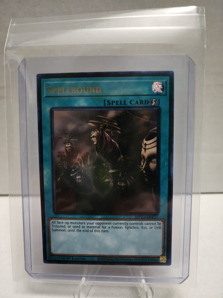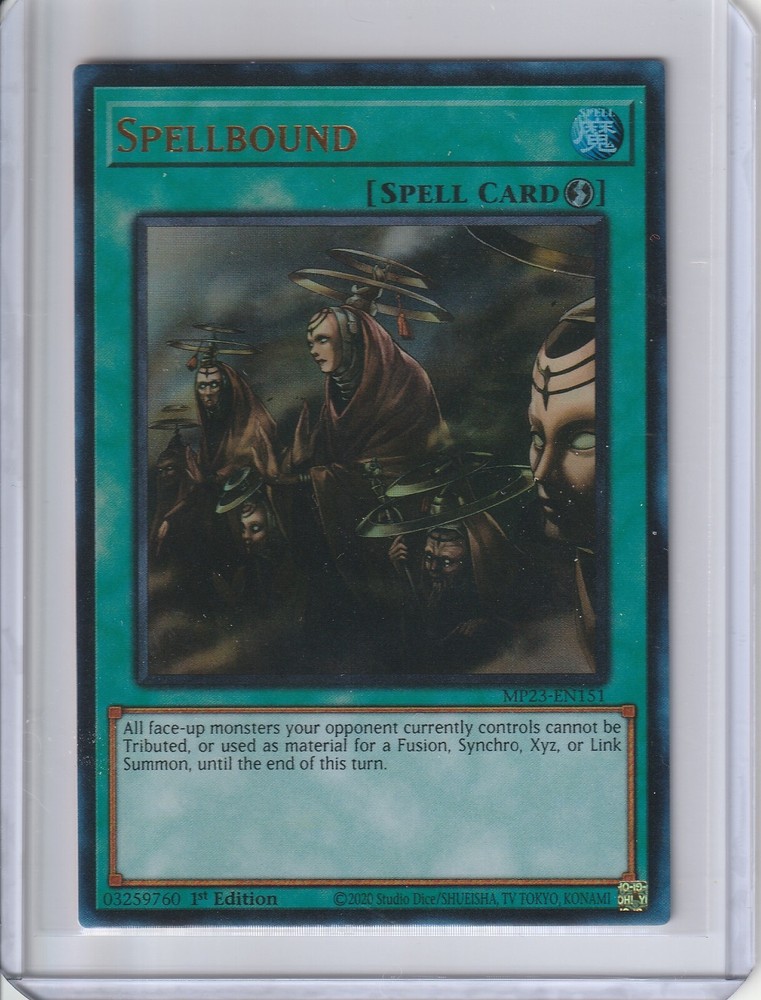 The "Spellbound" card is an Ultra Rare 1st Edition Spell-Quick Play card from the Yu-Gi-Oh! TCG 25th Anniversary Tin: Dueling Heroes Mega Pack set. Manufactured by Konami in the United States, this card is part of the Standard size category and is made of Card Stock material. It features the Attribute of "Spell" and is numbered MP23-EN151. Suitable for ages 6 and up, this English language card is a desirable collectible for fans of the Yu-Gi-Oh! trading card game. Personal Collection in Penny Sleeves, along with top loader, any questions, feel free to ask.