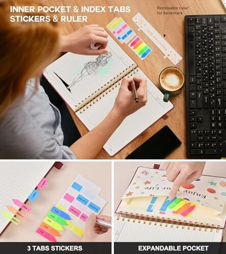 Return Policy Fast Delivery Trusted seller Spiral Notebook Journal for Women Men, 300 Numbered Lined Pages, College Ruled, A5 Hardcover Spiral Bound Notebook for School, Work, Note Taking Writing, Leather Spiral Journal Medium 5.9"x8.5" Product Description 【A5 Spiral Notebook & 300 Numbered Lined Pages】This spiral journal notebook 5.9in x 8.5in features 300 numbered lined pages, 1 persona data page and 3 pages Content, offering extensive space for your notes, ideas, and sketches. The college ruled format makes it ideal for use as a journal for women, men.The 7mm line spacing ensures a comfortable writing experience, while the spiral bound design makes it a great choice for college ruled spiral notebooks and spiral bound journals. 【Strong Metal Twin-wire & 180° Lay Flat Design】Featuring a robust metal twin-wire binding, this notebook opens flat at 180°, ensuring a smooth and comfortable writing experience. This design is particularly advantageous for those using it as a business notebook, professional notebooks for work. This spiral bound notebook features a hardcover vegan leather cover with printed design adds an element of sophistication and style. 【Functional Accessories & Organizational Tools】This spiral journal notebook includes 1 pen holder that securely keeps your writing tool within reach, 2 elastic closure bands that protect your pages, and an inner pocket for storing small items like notes or receipts.3 index sticker tabs and one removable bookmark ruler assist in navigation.These features make it an excellent choice for school notebooks, or work notebooks, serving as a reliable spiral journal for college use. 【Easy Tear-off Design & Thick Paper Quality】The spiral bound notebook pages are Easy to tear-off, ideal for sharing notes or removing pages without hassle. The thick paper minimizes ink bleed-through, ensuring clarity and legibility in your notes. Whether you're using it as a daily journal, travel journal, or journaling notebooks, this lined notebook offers a smooth writing experience. As a wide ruled notebook, it's perfect for thorough note-taking. 【Versatile Use & Gift-worthy Design】This spiral notebook is suitable for a wide range of uses. Whether you need it for school, college, work, or personal journaling, it's the perfect choice. It can be used as a diary, daily journal, or writing notebook. The college ruled pages are great for note-taking and studying. With its stylish design and practical features, this notebook is sure to become your go-to for all your writing needs. Shipping Returns Payment Shipping Shipping is FREE to all addresses other than APO/PO boxes in the lower 48 states. All our stock ships from US-based warehouses. Shipped via USPS or UPS (depending on location and package weight) Unless stated otherwise, all orders will ship within 24-72 hours of your payment being processed. Check our feedback to see the great reviews of FAST shipping we offer. Returns Seller does not accept returns Payment We currently accept payment via eBay managed payments only. Once payment is cleared, we will dispatch your shipment within 1-3 business days. Please refer to the "Shipping" tab for more information regarding shipping speed to your destination.