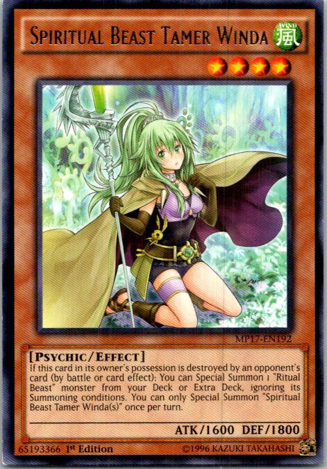 Spiritual Beast Tamer Winda MP17-EN192 Yu-Gi-Oh! 1st Edition Light Play