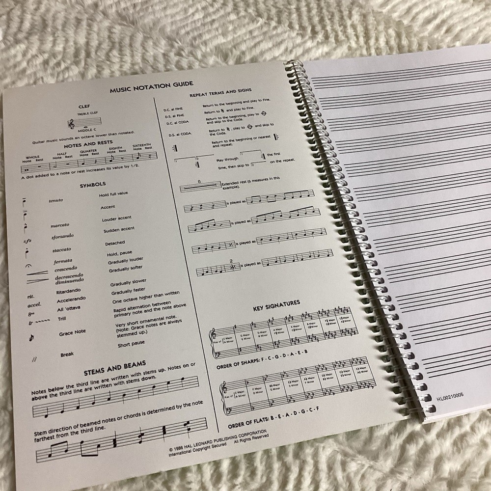 | Book Title | Standard Wirebound Manuscript Paper: 8. 5 X 11, Wirebound, 96-Page Notebook Including Music Notation Guide |