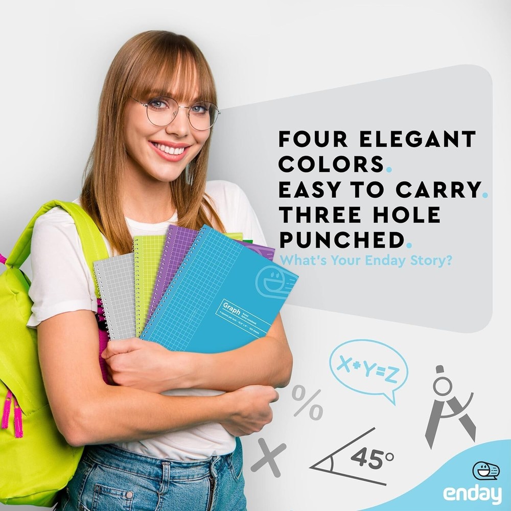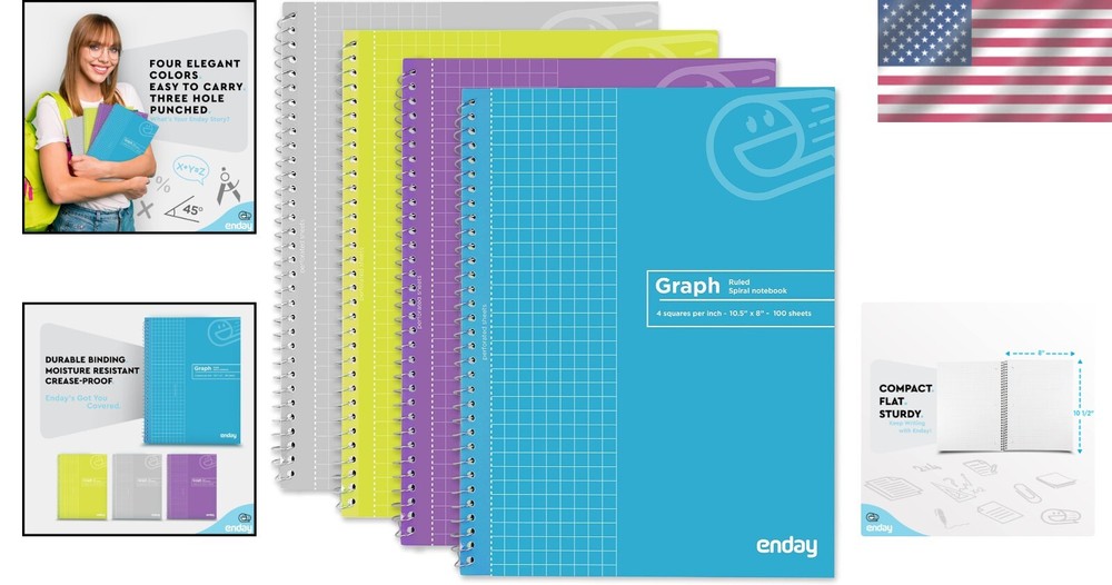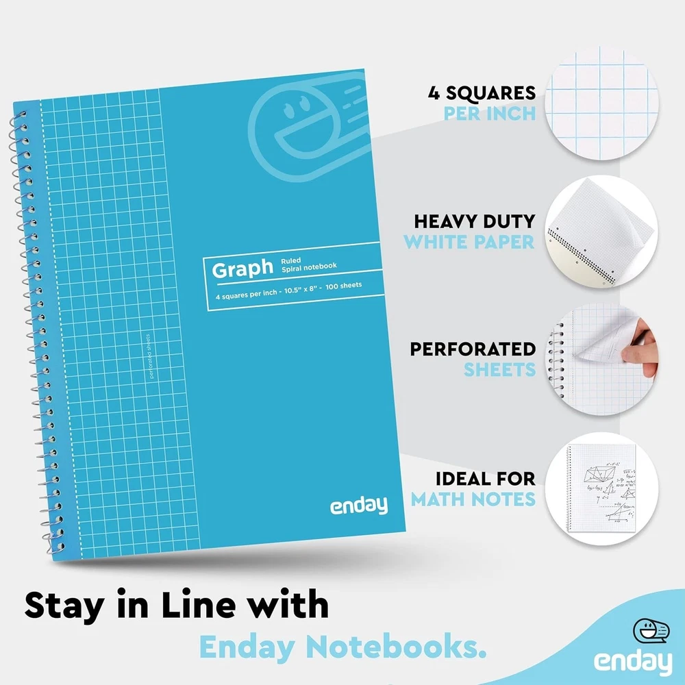 This notebook is a game-changer! The quad-ruled pages keep my notes organized, and the moisture-resistant cover is perfect for on-the-go use. The spiral binding lays flat, making writing smooth, and the size fits easily in my bag. Durable, stylish, and practical—exactly what I needed for work and school!