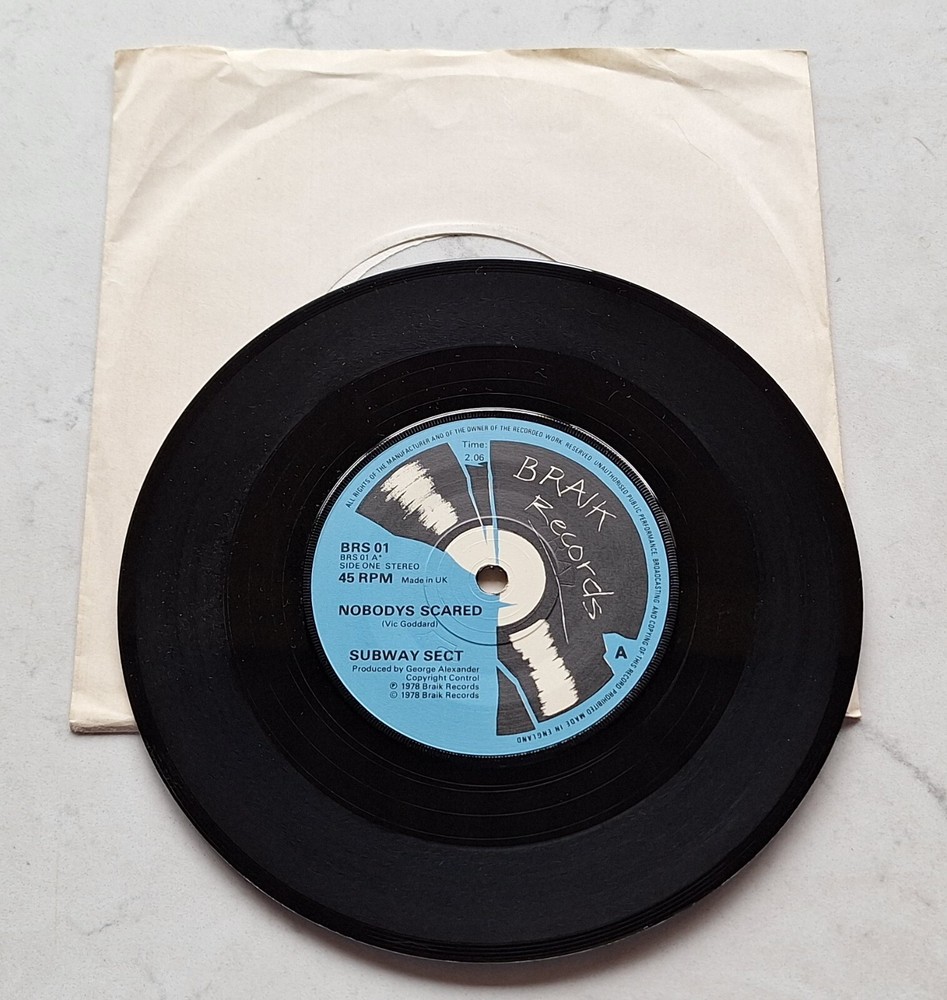 The product is a 1978 UK 45 vinyl single by Subway Sect, titled "Nobody's Scared" From the Archive of Annie Nightingale Released on Braik Records, this first pressing features a punk/new wave style and comes in a standard 7" record format. The black vinyl is in very good plus condition, as is the paper sleeve. This edition is a collector's item with a catalogue number of BRS 01, showcasing the band's iconic sound from the 1970s. Recently purchased at auction from the Archive of Annie Nightingale DJ/TV Presenter Archive, We will provide a COA with you purchase Combined Shipping Available !!!! Please await for combined where possible. Any problems with your order, please contact me before leaving feedback We offer 100% no quibble refund policy As always, any questions please ask. All Transactions sent Tracked Royal Mail Only Payment Advice !!!! Please note that E-Bay cancel all NON-Payment auctions after 4 days, this is done automatically b y E-Bay So please ensure all payments are received before this happens PLEASE NOTE THAT YOU ARE BUYING FROM A LEADING UK PUNK MEMORABILIA SPECIALIST AND CAN BE FOUND AT PUNKROCKPOSTERS.NET