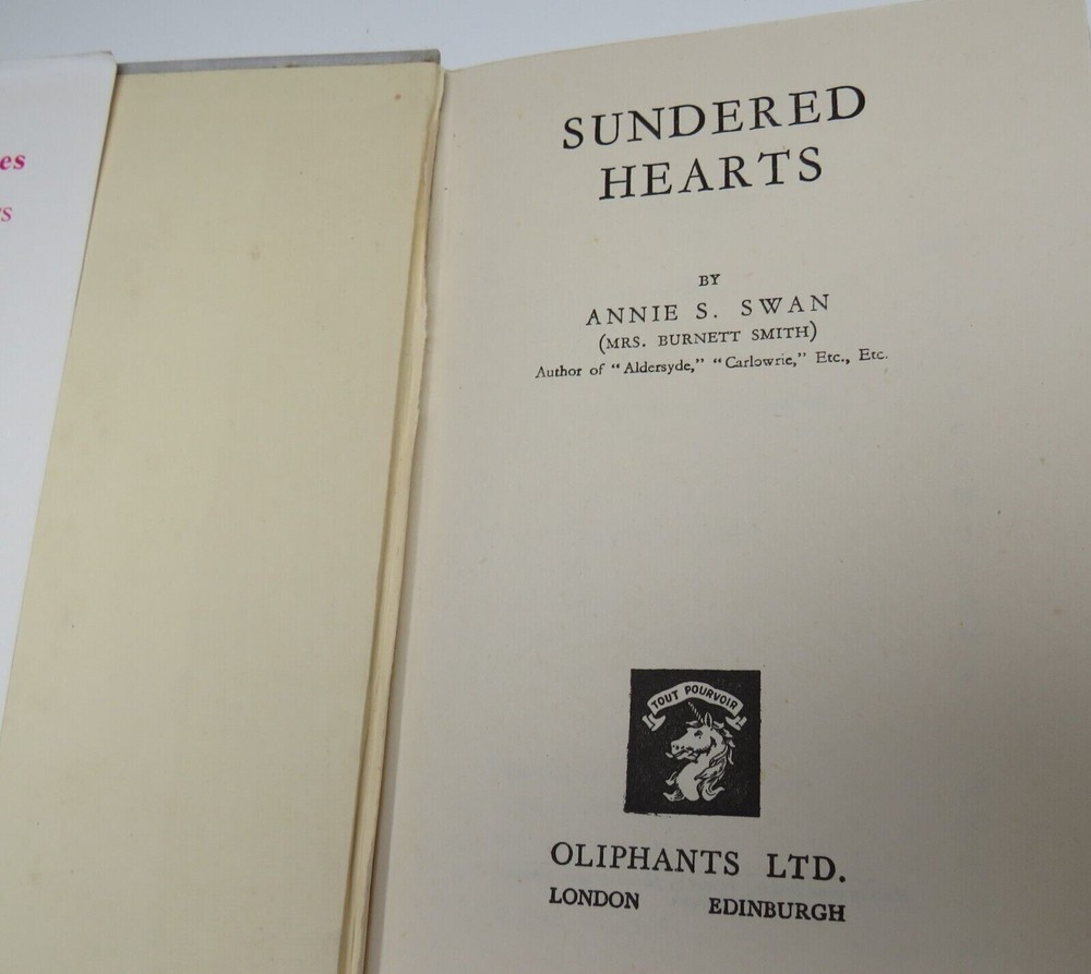 For Sale - Sundered Hearts By Annie Swan Date - not dated Author - Annie Swan Page number - 224 Height of book - 19.1 cm Publisher & Place - Oliphants Ltd London Edinburgh Condition - Some edge tears ...