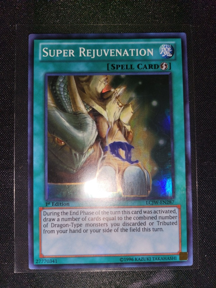 The Super Rejuvenation LCJW-EN287 Yu-Gi-Oh 1st Edition card is a highly sought-after collectible in the Yu-Gi-Oh TCG world. This Super Rare card from the Yu-Gi-Oh Legendary Collection 4: Joey's World set, manufactured by Konami, features the Spell attribute and is in English language. As a 1st Edition card, it holds added value for collectors and players alike. The card number LCJW-EN287 represents a unique addition to any Yu-Gi-Oh card collection.