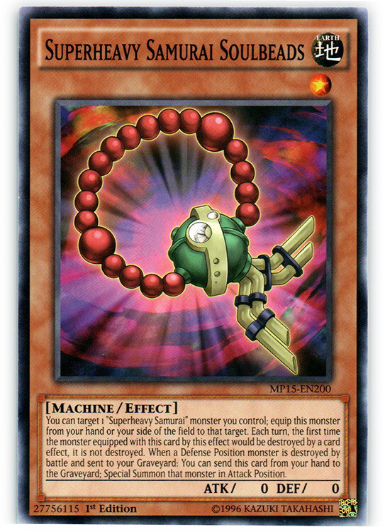 Please, carefully read the following: Image shown is a stock photo and does not reflect the actual card you will be receiving. Please refer to the condition guide below, the title and item description for what you will be receiving. Please also be aware that due to plastic shortages, orders may not always come in a plastic toploader but will always be protected as much as possible to prevent damage. You will receive 3x Superheavy Samurai Soulbeads - MP15-EN200 - Common - 1st Edition - Condition: Near Mint Please refer to the Title and Item Description above for the item being purchased. Delivery delays: Deliveries may not always fall within the estimated delivery dates when shipping outside of Canada and USA. Many factors may contribute to delays in delivering the package such as weather and customs. Please note that delivery to international locations may take up to 8 weeks to arrive . We always ship out orders within 1 business day and after dropping off with the post office, delivery times are out of our control. Feedback: We will always leave positive feedback for you and we ask if you can do the same for us. If there is any reason why the transaction was not up to your expectations, please message us before leaving feedback so we can address the issue. Combined shipping: To receive a combined shipping quote, please make sure that you commit to purchasing on ebay.ca . This allows us to send you a combined shipping invoice before payment. Shipping within the USA (6-10 Business days): FREE! Shipping within Canada (3-8 Business days): FREE! Shipping and handling delay: We aim to ship all orders within 1 business day. We do not ship on weekends and holidays. Condition Guide: We do not sell any cards that are in MINT condition, the best condition that we offer is near mint. Near Mint (NM) - Cards in Near Mint condition show minimal to no wear from shuffling, play or handling and can have a nearly unmarked surface, crisp corners and unblemished edges outside of a few minimal flaws. A Near Mint card may have a tiny edge nick or a tiny scratch or two, but overall look nearly unplayed with no major defects or flaws. Lightly Played (LP) - Cards in Lightly Played condition may have minor border or corner wear or even just slight scuffs or scratches. There are no major defects such as water damage, bends or issues with the structural integrity of the card. Noticeable imperfections are okay, but none should be too severe or at too high a volume. Moderately Played (MP) - Cards in Moderately Played condition exhibit condition issues visible at a casual glance. Cards in Moderately Played condition can have border wear, corner wear, scratching or scuffing, creases or whitening, minor dirt buildup or any combination of mild examples of these marks. A Moderately Played card may have some form of a more major marking, such as spot water damage or creasing that doesnʼt affect card integrity, but not in combination with other issues such as scratches, scuffs or border/edge wear and not impacting a large area of the card. Heavily Played (HP) - Cards in Heavily Played condition show a severe amount of wear. Heavily Played condition can include cards that have major creasing, major whitening, major border wear or any combination of those flaws. (These flaws cannot prevent the card from being tournament playable when sleeved.) Damaged - Cards in Damaged condition can exhibit a tear, bend or crease that may make the card illegal for tournament play, even in a sleeve. Cards in Damaged condition may have extreme border wear, extreme corner wear, heavy scratching or scuffing, folds, creases or tears or other damages that impacts the structural integrity of the card.