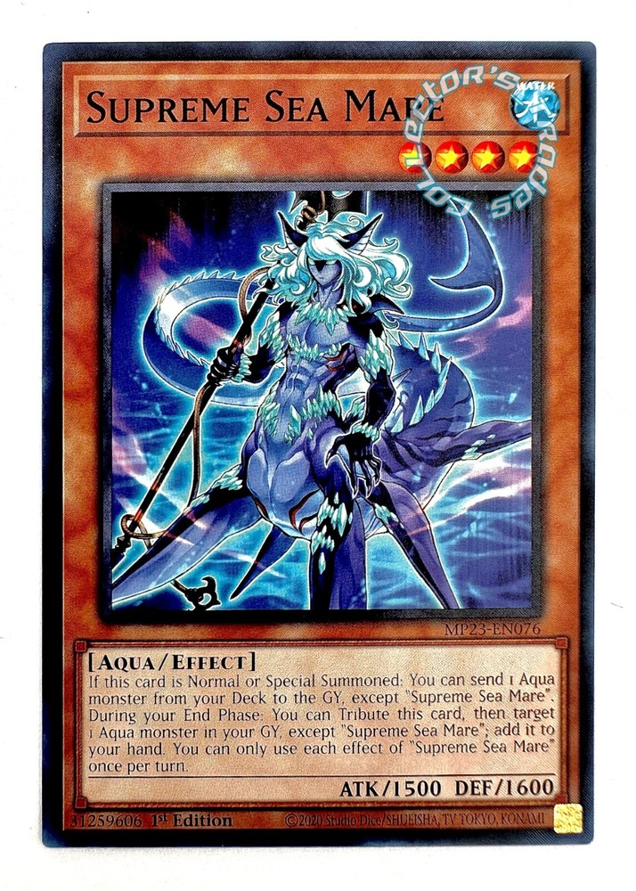 "Supreme Sea Mare" MP23-EN076 Common Yu-Gi-Oh! 25th Anniversary Tin: Dueling Heroes Mega Pack Near Mint - Level 4 - - Water Monster - - "Supreme Sea Mare " - - No.076 - - Common - - 2023 Yu-Gi-Oh! - 25th Anniversary Tin: Dueling Heroes Mega Pack - - 1st Edition – - Aqua/Effect - - ATK/1500|DEF/1600 - - 100% Authentic Yu-Gi-Oh! - - Near Mint - - Disclaimer- No replacements can or will be shipped in case of missing/broken package. If you have any questions, comments, or concerns, please feel free to contact me. Thank you for your interest in our listings and store and please come again!