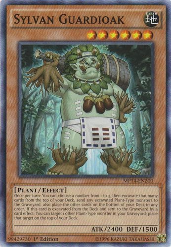 Sylvan Guardioak - MP14-EN200 - Common - 1st Edition Image is a stock photo of the card. You will receive the card in Moderately Played condition Condition: Moderately Played ATK/DEF : 2400/1500 Attribute : Earth Card Number : MP14-EN200 Card Rules : Card Text : Once per turn: You can choose a number from 1 to 3, then excavate that many cards from the top of yourDeck, send any excavated Plant-Type monsters to the Graveyard, also place the other cards on the bottom of your Deck in any order. If this card is excavated from the Deck and sent to the Graveyard by a card effect: You can target 1 other Plant-Type monster in your Graveyard; place that target on top of your Deck. Card Type : Effect Monster Edition : 1st Level : 6 Monster Type : Plant Name : Sylvan Guardioak Passcode : 99429730 Pendulum Scale : Rarity : Common Set : Mega Pack 2014 Be sure to visit our store for a wide selection of your favorite cards! We are running specials RIGHT NOW!! Shipping Options: ~Ships in a regular white envelope with a stamp for FREE! (THERE IS NO TRACKING INFORMATION AVAILABLE FOR THE ABOVE METHOD. SHIPPING TIME IS 4-10 BUSINESS DAYS) ~Ships in a TRACKEDbubble mailer for $5.99! ~Shipments are handled same or next business day. ~FREE SHIPPING for each additional card, so shop around our store!
