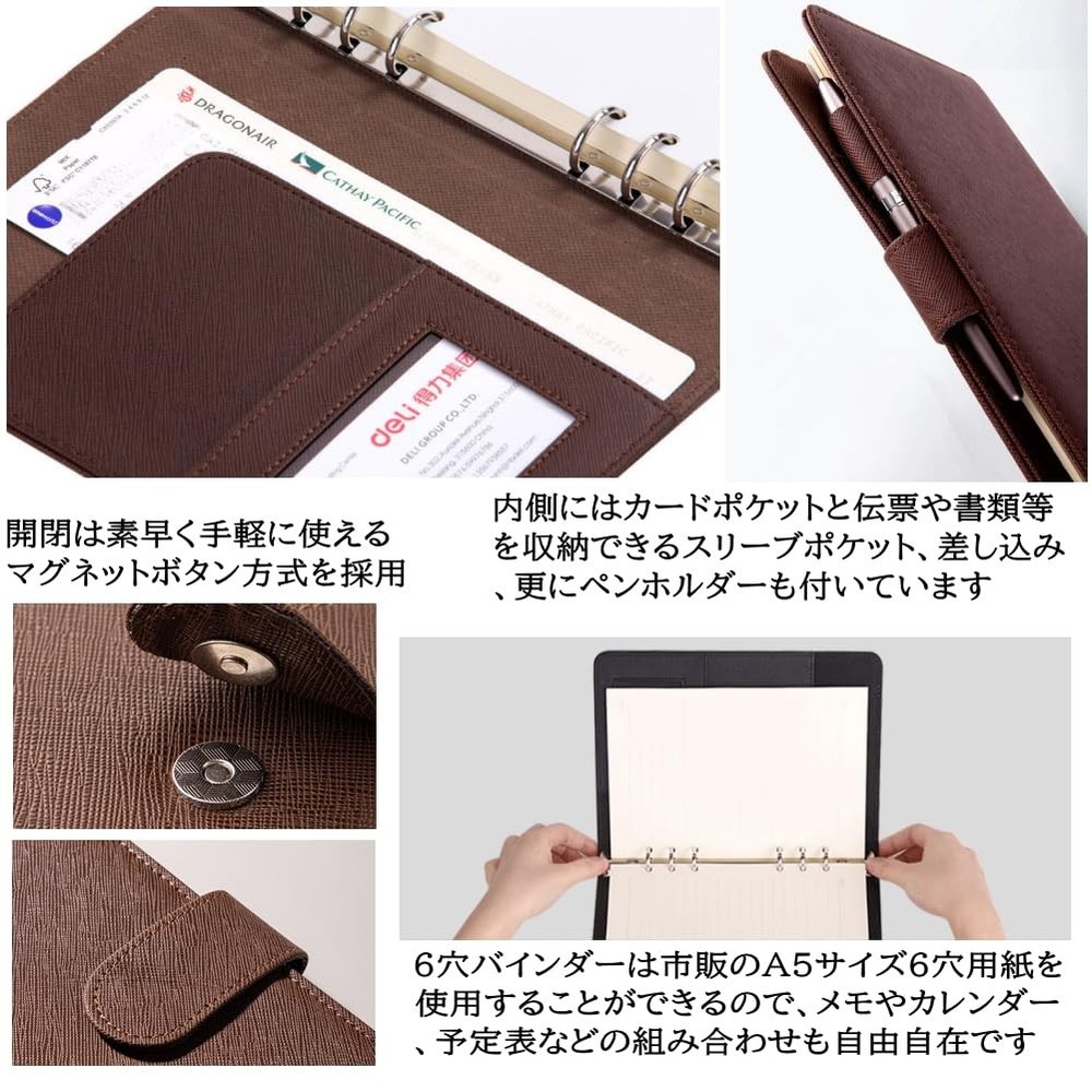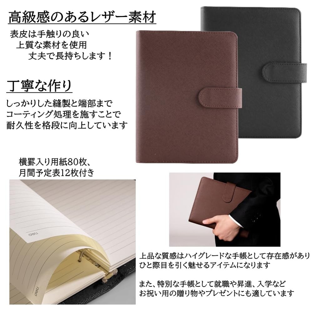 c1eqw7wokr Thank you for visiting! This store sells products regularly every day. Click "♡Save Seller"! We will send you a message when new products are posted. If you have any questions, please feel free to contact us. We will respond promptly within 24 hours. [ Description ] System Notebook A5 Size 6 Holes Ring Magnetic Button Leather Business Notebook _ This is an A5 size 6-hole binder system notebook made of high-quality leather with a luxurious feel. Its rich functionality and ease of use make it a comfortable lifestyle item for offices and campuses. The inside has a card pocket, a sleeve pocket for storing slips and documents, an insert, and a pen holder. It uses a magnetic button that can be opened and closed quickly and easily, making it easy to open and close the notebook, making it comfortable to use even on busy days. The 6-hole binder can use commercially available A5 6-hole paper, and you can freely combine memos and calendars! The luxurious skin is made of high-quality material that feels good to the touch and is durable and long-lasting. In addition, durability is greatly improved by careful stitching and coating all the way to the edges. The calm basic colors and simple design are perfect for business or university notebooks. In addition, the elegant texture of this high-grade notebook makes it a great gift for celebrations such as employment or promotion, or as a souvenir or present. [Size] Length: 23.3cm Width: 17.8cm Thickness: 3cm [Weight] 485g [Storage Capacity] - Card pocket x 1 - Sleeve pocket x 1 - Insert x 1 - Pen holder x 1 [Accessories] Includes 80 sheets of A5 size horizontally lined paper (160 pages) and 12 sheets of monthly schedule (24 pages). An A5 size 6-hole binder system notebook made of high-quality leather with a luxurious feel. Its rich functionality and ease of use make it a comfortable lifestyle item for offices and campuses. The inside has a card pocket, a sleeve pocket for storing slips and documents, an insert, and a pen holder. It uses a magnetic button that can be opened and closed quickly and easily, making it easy to open and close the notebook, making it comfortable to use even on busy days. The 6-hole binder can use commercially available A5 6-hole paper, and you can freely combine memos and calendars! The luxurious skin is made of high-quality ma [Caution: Customs duties] Purchases on eBay are personal imports. Customs duties are always charged if the import amount exceeds the set amount for each country. Example: Over 800 USD in the US, over 15 USD in Canada, over 174 USD in Germany (If you would like to know in advance, please feel free to contact us) - If the customs duties are not paid, the item will not clear customs and will be returned to Japan. In that case, the customs duties and return shipping fee will still be charged to you. Therefore, if you are contacted by the delivery company to pay the customs duties, be sure to complete the payment within 3 days. - eBay does not allow cancellations due to refusal to pay customs duties. Therefore, if you do this, the product price will not be refunded, even if you refuse to receive the product. - Customs duties are not included in the product price. Due to ebay rules, these charges are 100% buyer's responsibility. * Description Authenticity: 100% AUTHENTIC! We have multiple items in stock. To avoid troubles, please purchase the product after you understand and confirm the condition of the product. [ About Outlet Products ] Outlet products are available as well. It is possible that materials, fabrics or other details of these items may be different from the original ones even if they have the same model numbers. In addition, it may happen that some stains or scratches cannot be repaired. Please note that outlet products will not be acceptable for after-sales service. Thank you for your understanding. [ Country of Manufacture ] If there is no description of Made in Japan on the listing page, Products are manufactured in other countries (other than Japan, such as China and Vietnam). [ Manual & Menu Language ] Most of our products are items used in the Japanese market. So the item only has Japanese manual and menu language. If you need a manual or menu in English or your country's language, please obtain it yourself from the official website. [ Electronics ] Japan Voltage : 100V Please check your country's voltage before order. Buyer may need down transfomer to use our item, Because most of country's voltage is higher than 100V. Plug: TypeA Please check your country's plug. Buyer may need exchange plug. [ International Buyers - Please Note ] Import duties, taxes and charges are not included in the item price or shipping charges. These charges are the buyer's responsibility. Please check with your country's customs office to determine what these additional costs will be prior to bidding/buying. These charges are normally collected by the delivering freight (shipping) company or when you pick the item up - do not confuse them for additional shipping charges. We do not mark merchandise values below value or mark items as "gifts" US and International government regulations prohibit such behavior. [ Shipping Method ] Worldwide shipping with tracking number.Fast shipping via FedEx, DHL, etc.(Includes tracking number and insurance.)