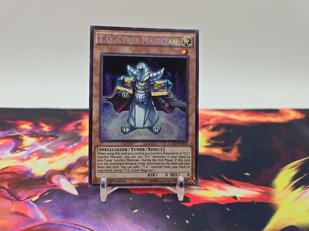 Enhance your Yu-Gi-Oh! TCG collection with this rare and valuable T.G. Cyber Magician card. With its stunning artwork and powerful abilities, this Secret Rare monster is a must-have for any serious collector or duelist. Manufactured by Konami and featuring a 1st Edition print, this card is in near-mint to mint condition, ensuring its value and longevity in your collection. Whether you're a fan of the T.G. archetype or simply appreciate the beauty of rare cards, this Cyber Magician is a great addition to your deck.