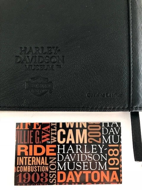 The Story of My Harley-Davidson leather-bound notebook. From the Harley Museum in Milwaukee. Covered in genuine soft leather you can really smell. Includes a ribbon bookmark. Great for keeping notes on rides, your bike, your life. As you can see Museum price is $40, save 50% here. Thanks for looking and ride safe.