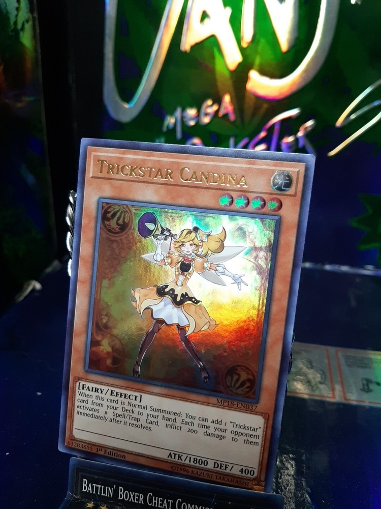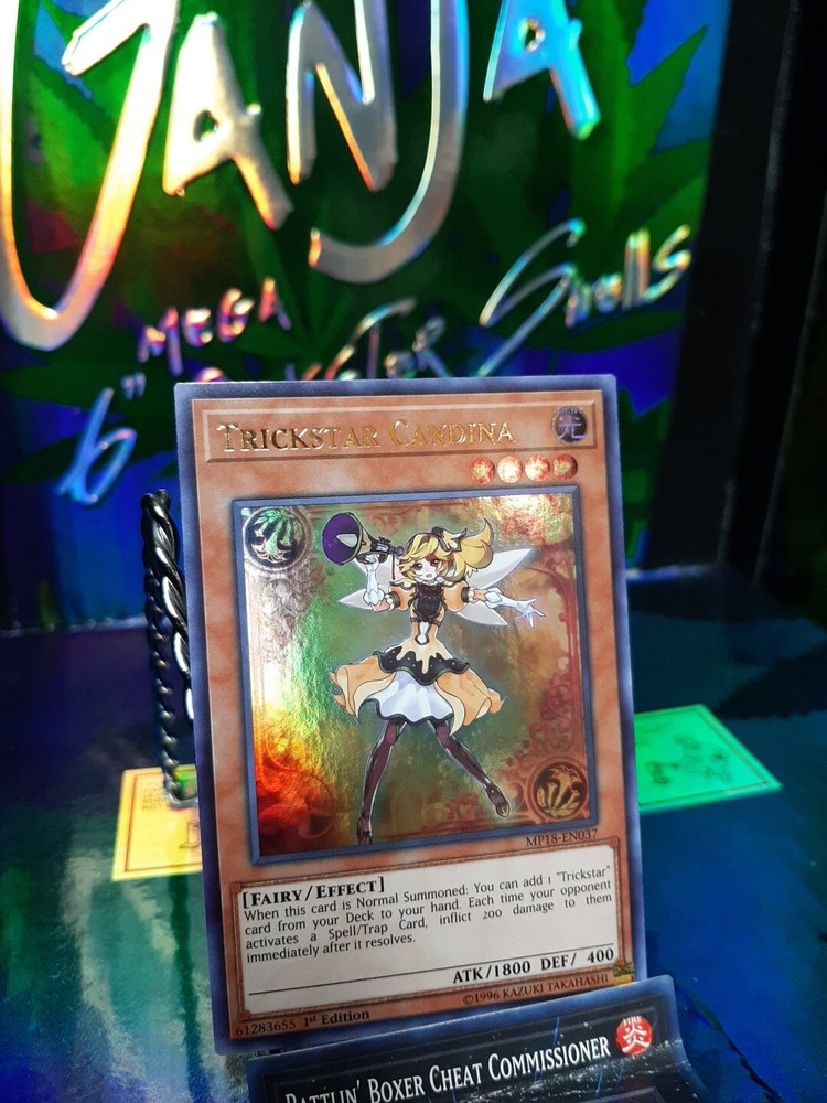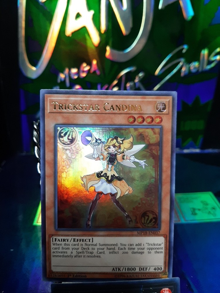 The product is a Yu-Gi-Oh! trading card featuring Trickstar Candina from the - Yugi - set. This particular card is classified as an Ultra Rare and is the 1st Edition of MP18-EN037. Trickstar Candina is a sought-after card known for its rarity and collectible value in the Yu-Gi-Oh! TCG. Fans of the game and collectors of rare cards would be interested in adding this Ultra Rare card to their collection.