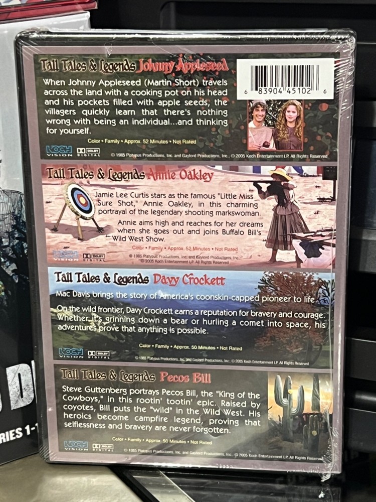 Tall Tales & Legends 4-MOVIE 1-JOHNNY APPLESEED 2-ANNIE OAKLEY 3-DAVY CROCKETT 4-PECOS BILL NTSC Format! Region One! The DVD is Brand New and Sealed! The DVD are in Stock and Ready to Ship! Shipping F...