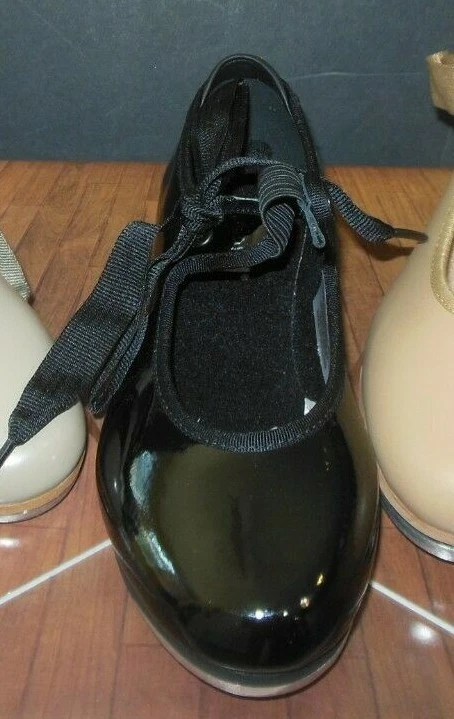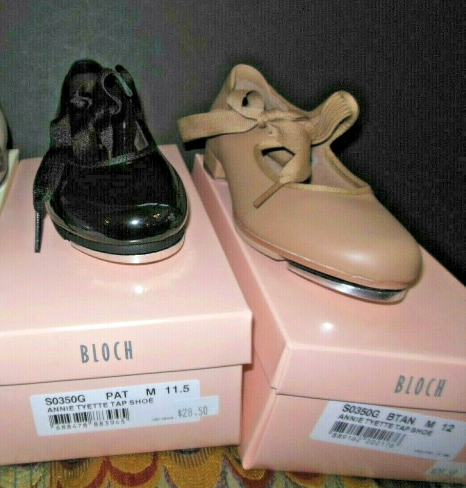 Brand new and in the box, this pair of tap shoes from Bloch gives a feminine style line and sturdy support to the beginner. The Bloch Annie has a soft kashmir lining and padded insole for comfort and to reduce moisture.S0350G and ladies S0350L offered here in 3 colors. Please note that there is NO SIZE 2, 2.5, 3, or 3.5 The girls 2 jumps to the ladies size 4. The two sides of the upper part of the shoe look like the old style ribbon tie but are fastened together with an elastic strip featuring a snap design as well as a ribbon. The ribbon has been threaded through the eyelets and tied in a bow to conceal the elastic. Synthetic upper and pretty good sounding taps for a beginner tap shoe. This shoe fits fairly close to street shoe size but when ordering for little ones we recommend you go up a 1/2 size for grow room. upstr This item is in the promo shipping program (buy 3 eligible items and shipping is free!) We ship out same day Monday through Friday (unless you buy after 2pm which is when our pickup is) I have tens of thousands of dance costume items, check out our other listings! We gladly combine shipping, just put your items in the cart and request an invoice.