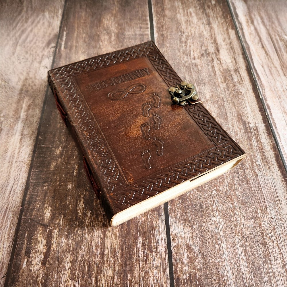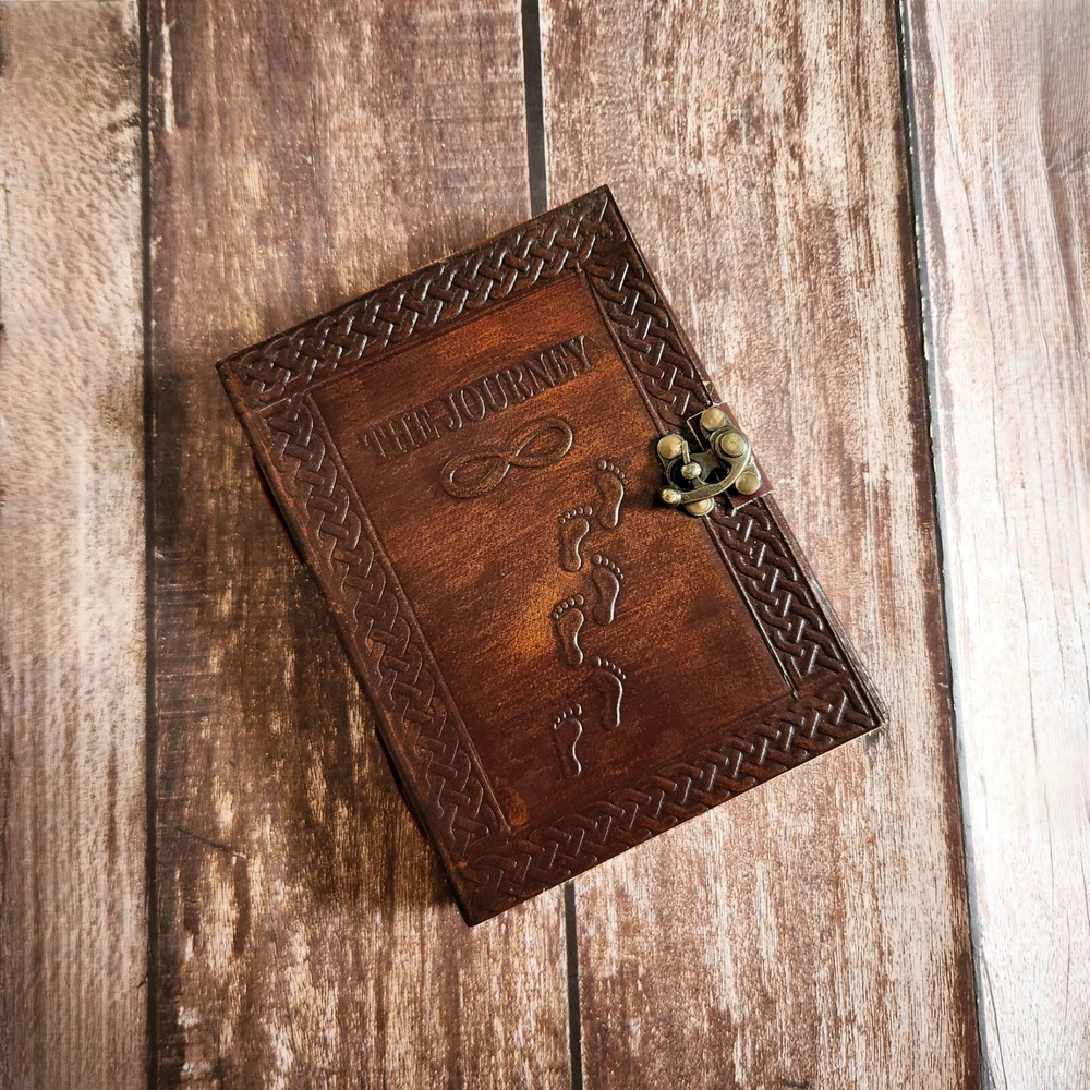 Unleash your creativity & capture your dreams with THE JOURNEY Embossed Leather Journal. This Premium Leather sketchbook is perfect for writers, artists, & dreamers alike. Crafted for high quality leather, this journal not only looks exquisite but also feels luxurious in your hands. its compact size makes it ideal for carry with you wherever you go. Contains 210 pages of high quality, unlined paper perfect for sketching, journaling, or note-taking. Measuring 7x5 Inches, this journal is the perfect size to carry in your bag or backpack.