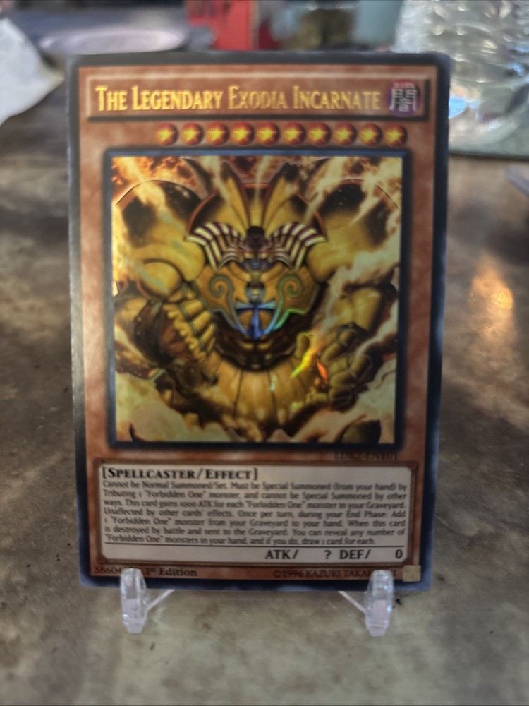 The Legendary Exodia Incarnate LDK2-ENY01 is a highly sought-after ultra rare card from the Yu-Gi-Oh! game, specifically from the Legendary Decks II set. This 1st Edition card features the iconic Exodia character in a powerful and unique design. As a collectible card game individual card, it is a valuable addition to any Yu-Gi-Oh! card collection, appealing to fans and collectors alike for its rarity and special edition status.