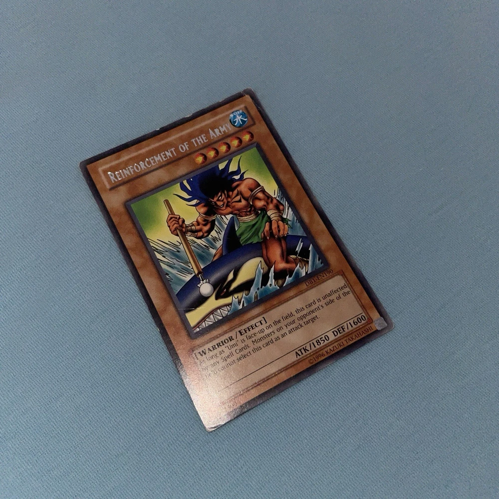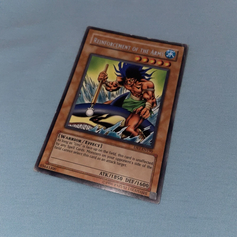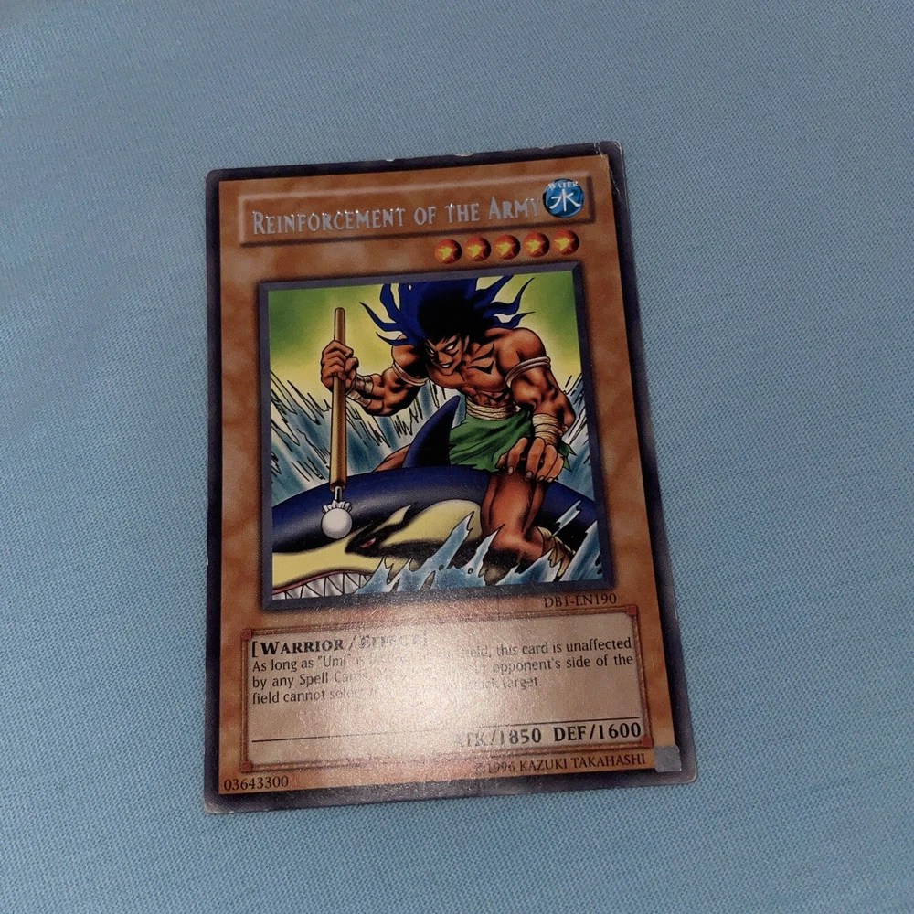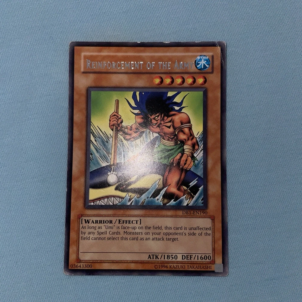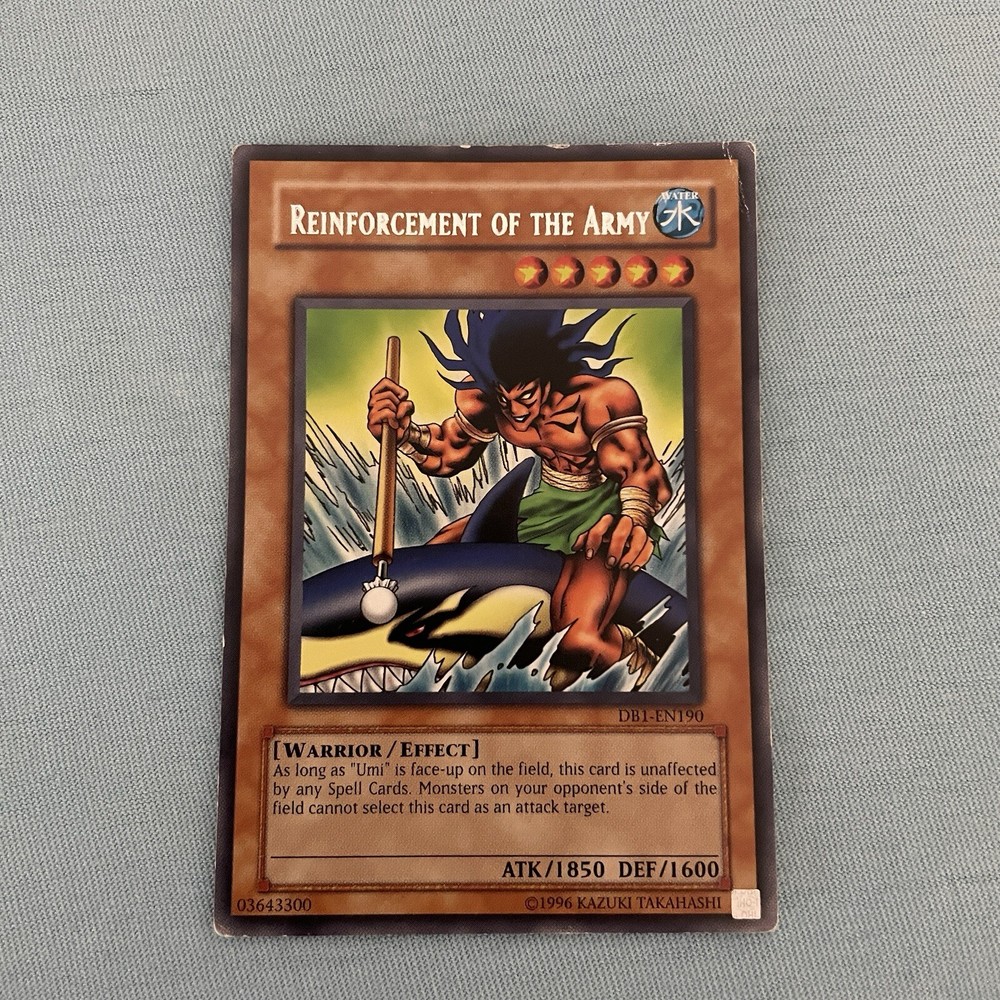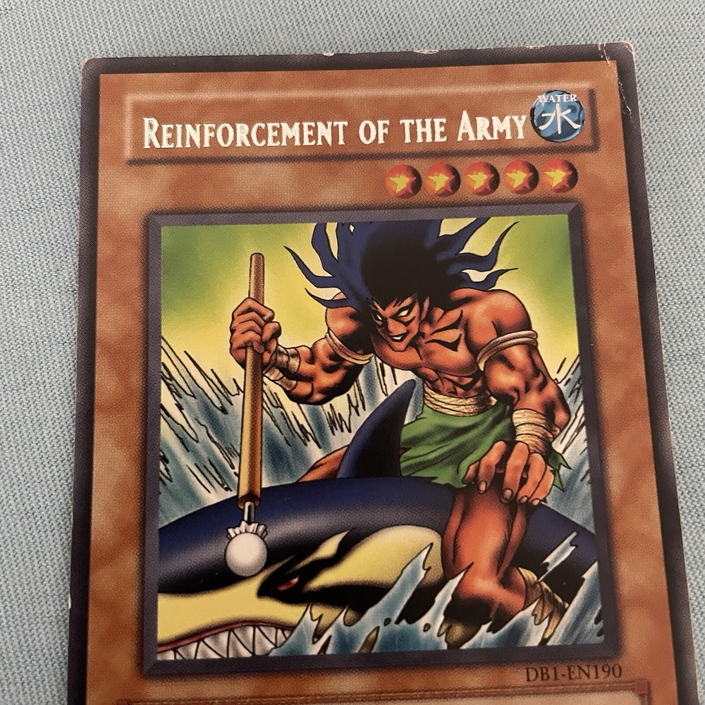 The Legendary Fisherman + Reinforcement Of The Army - DB1-EN190 - Misprint Error DB1 Name Misprint, has the wrong card name MP condition See images as are of the exact card...