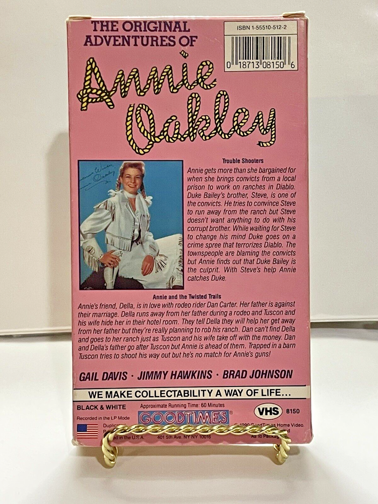 This classic VHS brings back the thrilling adventures of Annie Oakley, played by the amazing Gail Davis! Perfect for fans of old-school Westerns, it’s packed with action, sharpshooting, and frontier spirit. The black-and-white footage adds nostalgic charm, and at 60 minutes, it’s a fun, quick watch. Great for collectors—plus, combined shipping saves you money if you grab more treasures! A must-have for vintage TV lovers.