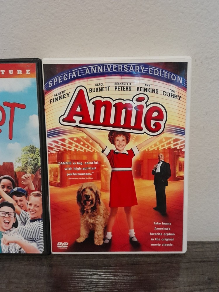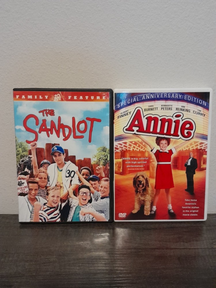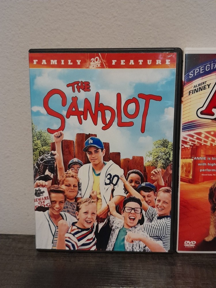 This DVD lot includes two movies, "The Sandlot" and Annie. Both films are in English and fall under the genre of Adventure, with a sub-genre specifically catering to families. "The Sandlot" is a heartwarming story about friendship and loyalty, perfect for family movie nights. This DVD set offers a mix of entertainment and values that will appeal to both children and adults alike.
