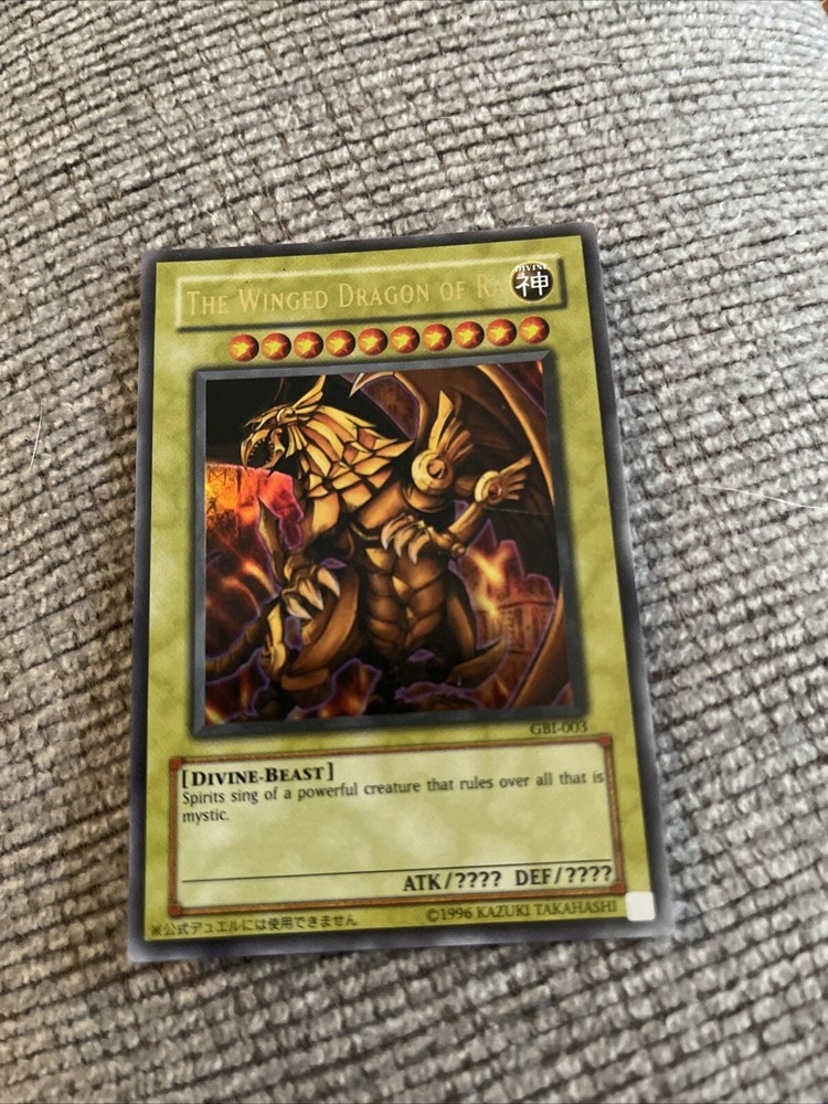 This is a limited edition Yu-Gi-Oh! card featuring The winged dragon of Ra. It is part of the Legendary Collection 1 set and has the card number LC01-EN003. The card is in English and manufactured by Konami. With a divine color attribute and divine-beast creature/monster type, this ultra-rare card has 0 defense/toughness and 0 attack/power. It is a normal card type and belongs to the Yu-Gi-Oh! TCG game. Perfect for collectors, this card is a must-have for any fan of the game.
