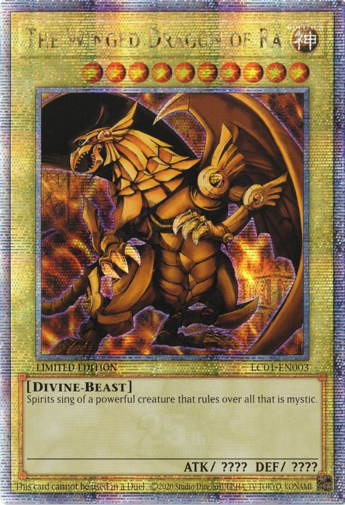 This listing is for The Winged Dragon of Ra LC01-EN003 (Quarter Century Secret Rare) from the Legendary Collection: 25th Anniversary Edition set . This is misprint card. The error on this card is that the Attribute shows the German word for Divine " Göttlich" instead of "Divine". Each photo in this listing is a stock photo as this is a bulk variation listing. You will receive the same card in the same condition selected , but it may not be the exact copy from the photo . Therefore, centering on the card you receive may differ from the centering of the card listed in the photo. Please be aware of this before purchasing. Each card will be in Near Mint condition. Cards in this listing may have some very minor imperfections (such as few small dots of whitening or a couple of very small scratches), but there will be no major damage to the cards (such as excessive whitening, scratches, edgewear, creases, water damage, etc). The cards from your order will be securely packaged in a card saver and card saver perfect fit sleeve and shipped with the eBay Standard Envelope program for cards under $20. Whether you're looking to power up your deck or add this to your collection, you'll be sure to enjoy this card! Check out our other listings for more Yu-Gi-Oh! cards!