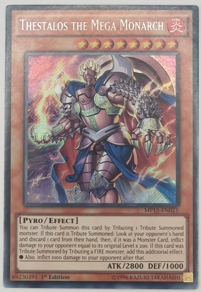 Thestalos the Mega Monarch - MP15-EN021 - Secret Rare 1st Edition Specific Condition of This Item : Excellent- Near Mint - please see photos. Standard Conditions on all Items: All items sold are described to the best of our ability, as accurate as possible, and with utmost care on our part. However, to avoid any potential oversights, I respectfully request that your review item description and photos, and ask all questions PRIOR TO BIDDING All items are original and have never been altered unless clearly stated otherwise. Satisfaction of all my customers is paramount so please carefully check all photos as they form part of the description- I cannot list each and every blemish on every item-I grade the items and then highlight any MAJOR defects WE APPRECIATE YOUR BUSINESS AND IT IS IMPORTANT TO US TO ACHIEVE 100% CUSTOMER SATISFACTION, THEREFORE PART OF THE TERMS OF THIS SALE ARE THE EXCHANGE OF FEEDBACK ON THE TRANSACTION. FEEDBACK WILL BE LEFT ONCE WE RECEIVE IT - THANK YOU Payment I request that you make same day payment unless agreed to in advance, I accept PayPal or direct bank deposit. Please just ask up front if you are not sure. Return Policy Seller does not accept returns. If the item you received doesn't match the listing description, your purchase may be eligible for eBay Money Back Guarantee if the return request is made within 3 days from delivery. Unit001