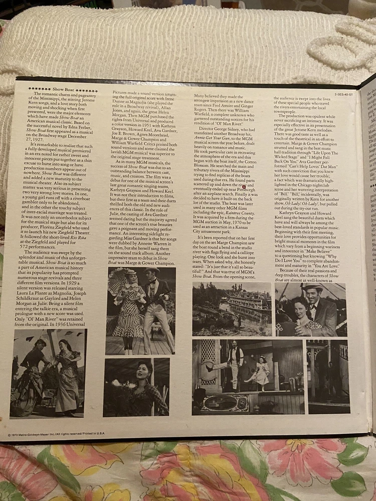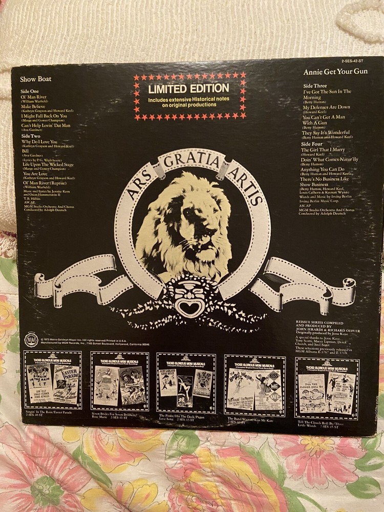 This 2 LP set features the iconic MGM musicals, SHOW BOAT and ANNIE GET YOUR GUN. The collection includes original pressings of both albums, complete with gatefold covers and inner sleeves. The records are 33 RPM and have a diameter of 12 inches. The quality of the records is very good plus (VG+) and the sleeves are also in very good plus condition. The albums were released in the United States in 1973 by MGM record label. This is a must-have for fans of musicals and collectors of vinyl records.