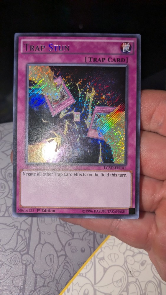 Enhance your Yu-Gi-Oh! TCG collection with the Trap Stun LC5D-EN141 from the Legendary Collection 5D's. This Secret Rare card is a must-have for Trap-Normal fans, boasting the 1st Edition feature that veteran players and collectors alike seek. Manufactured by Konami and presented in English, this card adds a unique edge to your gameplay. The card's attributes reflect its Trap-Normal type, with a card number of LC5D-EN141, ensuring its authenticity and collectability. Whether for competitive play or for the sheer joy of collecting, the Trap Stun card is an exceptional piece to own. Dive into the strategic depths of the Yu-Gi-Oh! TCG with this exceptional card.